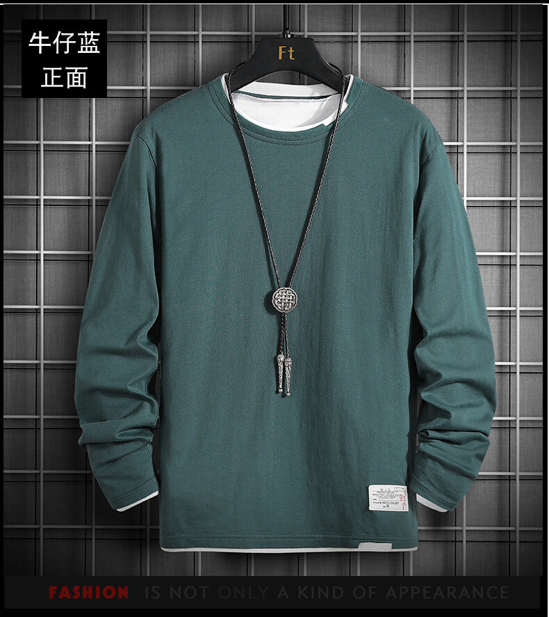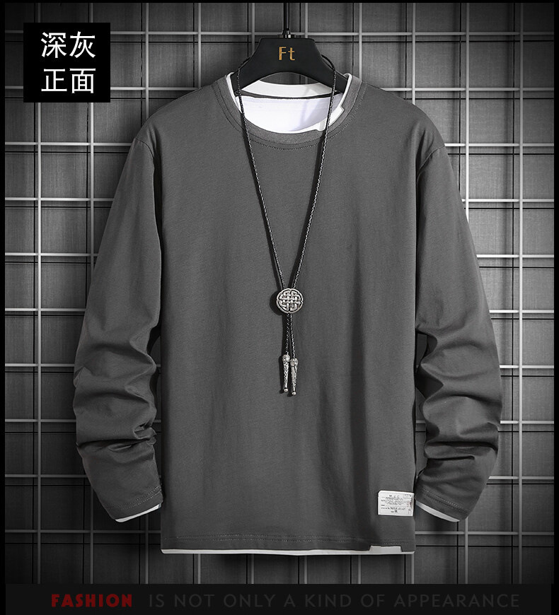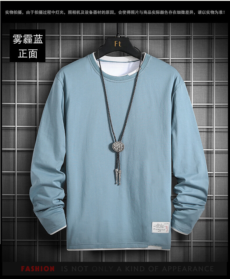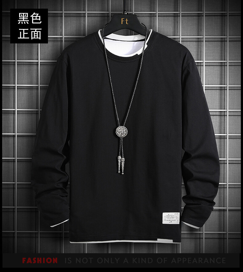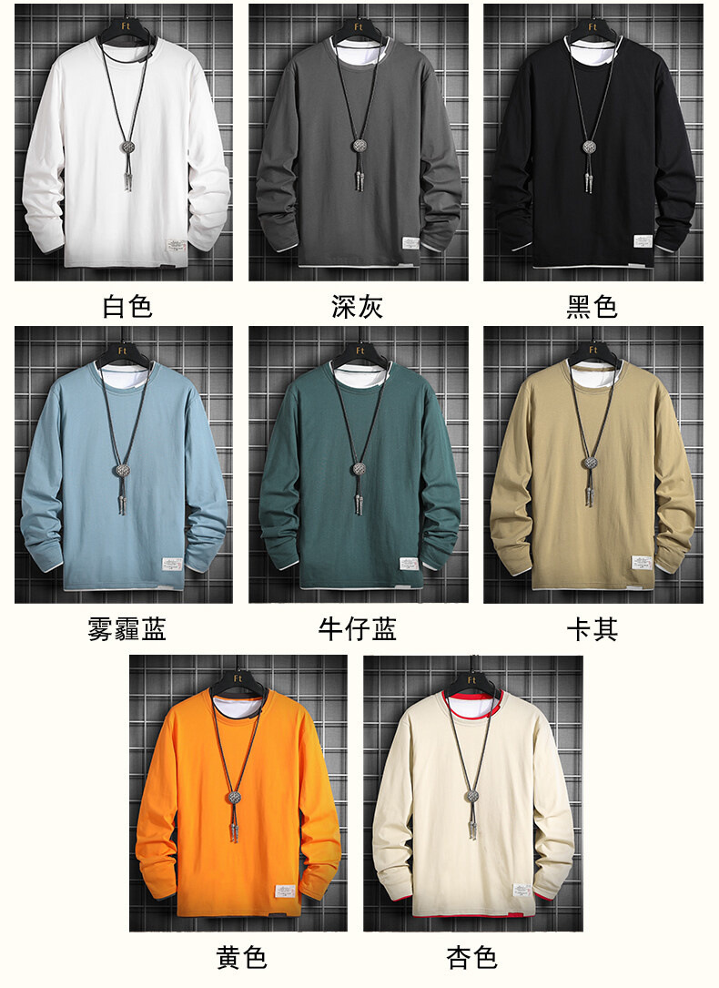 爆款卫衣男纯棉春秋季新款假两件长袖t恤衫韩版时尚打底上衣批发