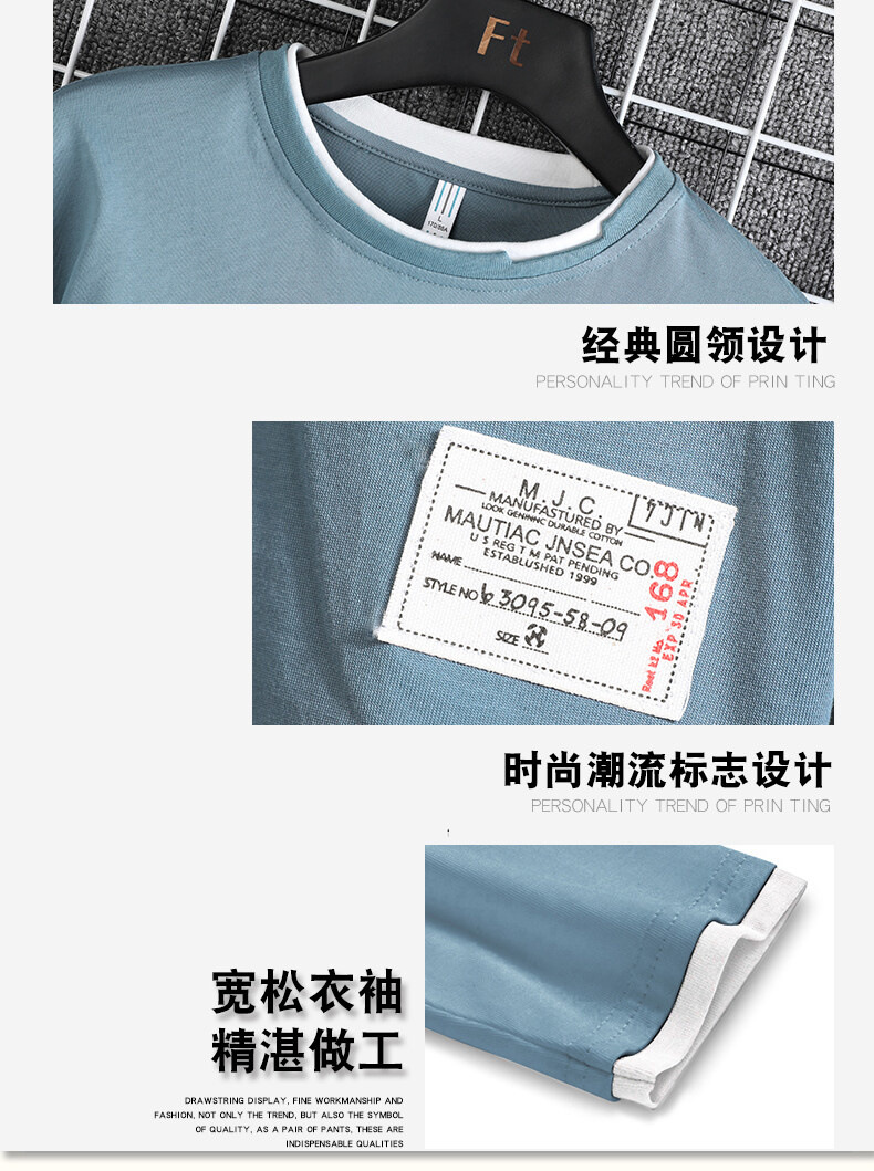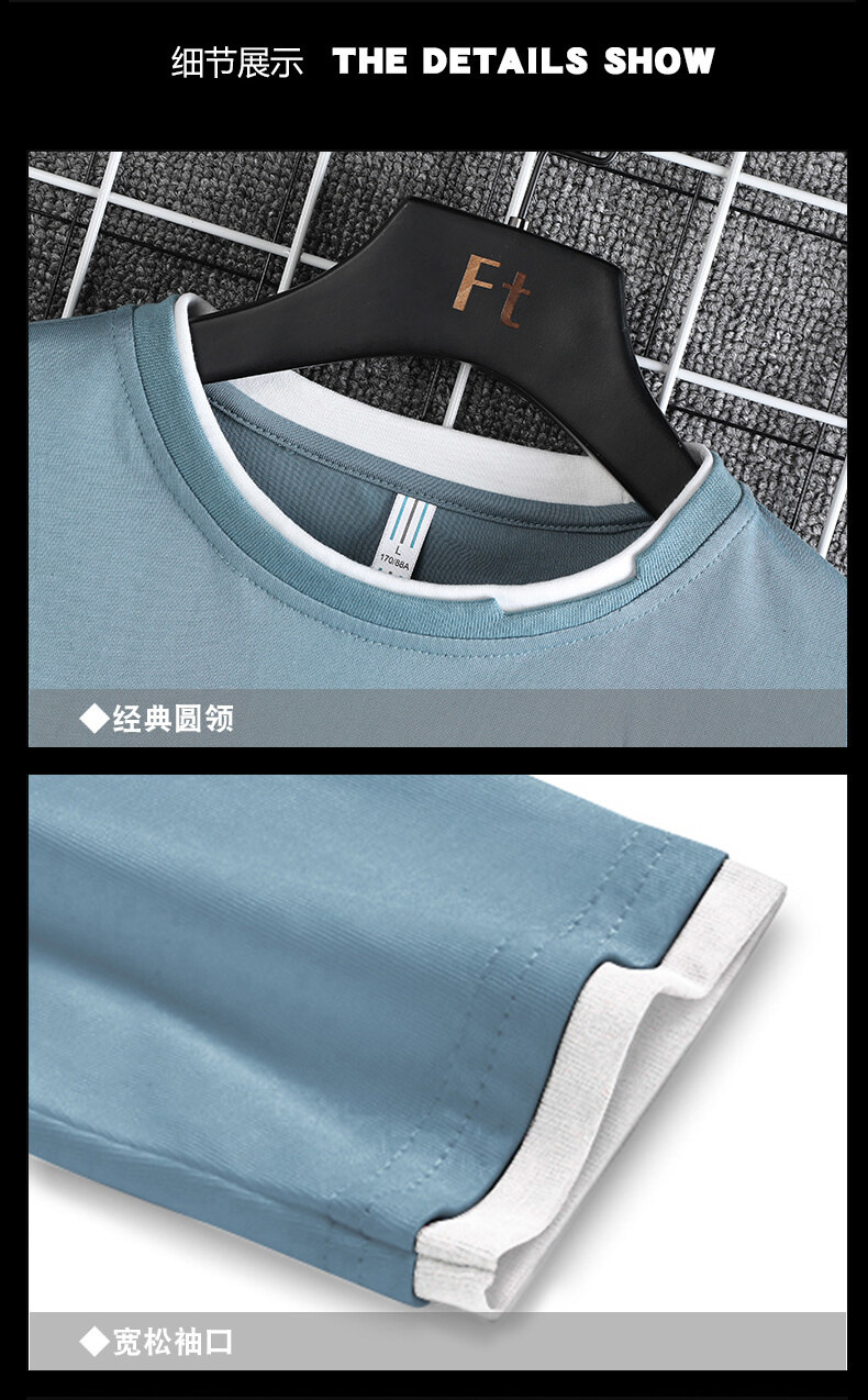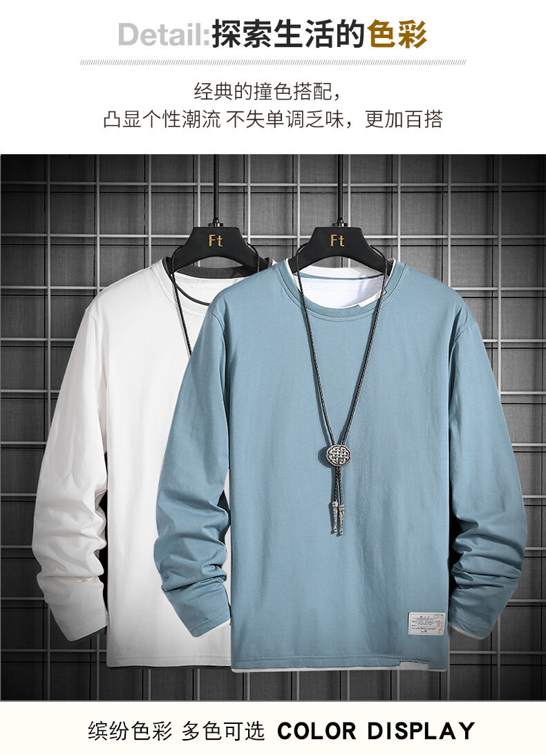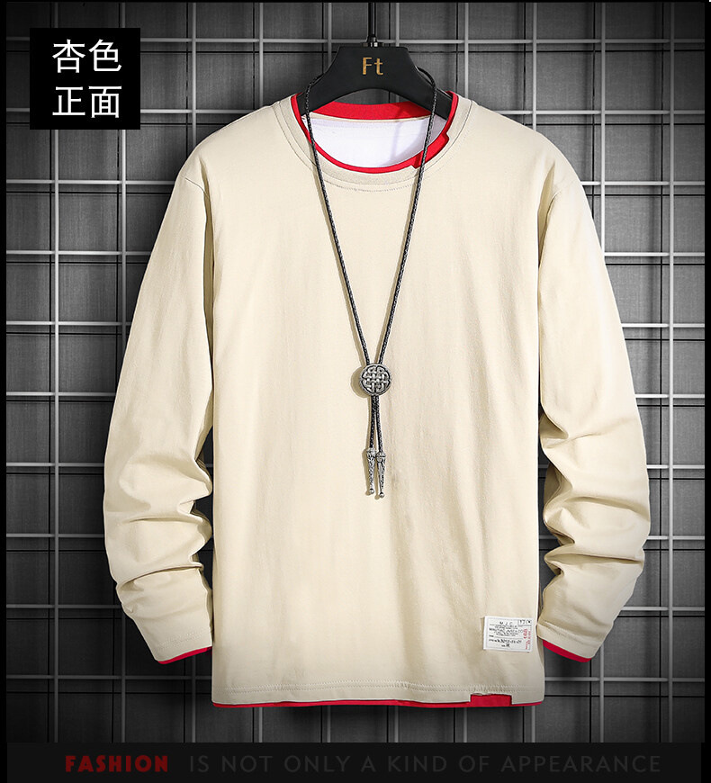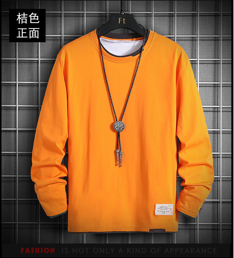 爆款卫衣男纯棉春秋季新款假两件长袖t恤衫韩版时尚打底上衣批发