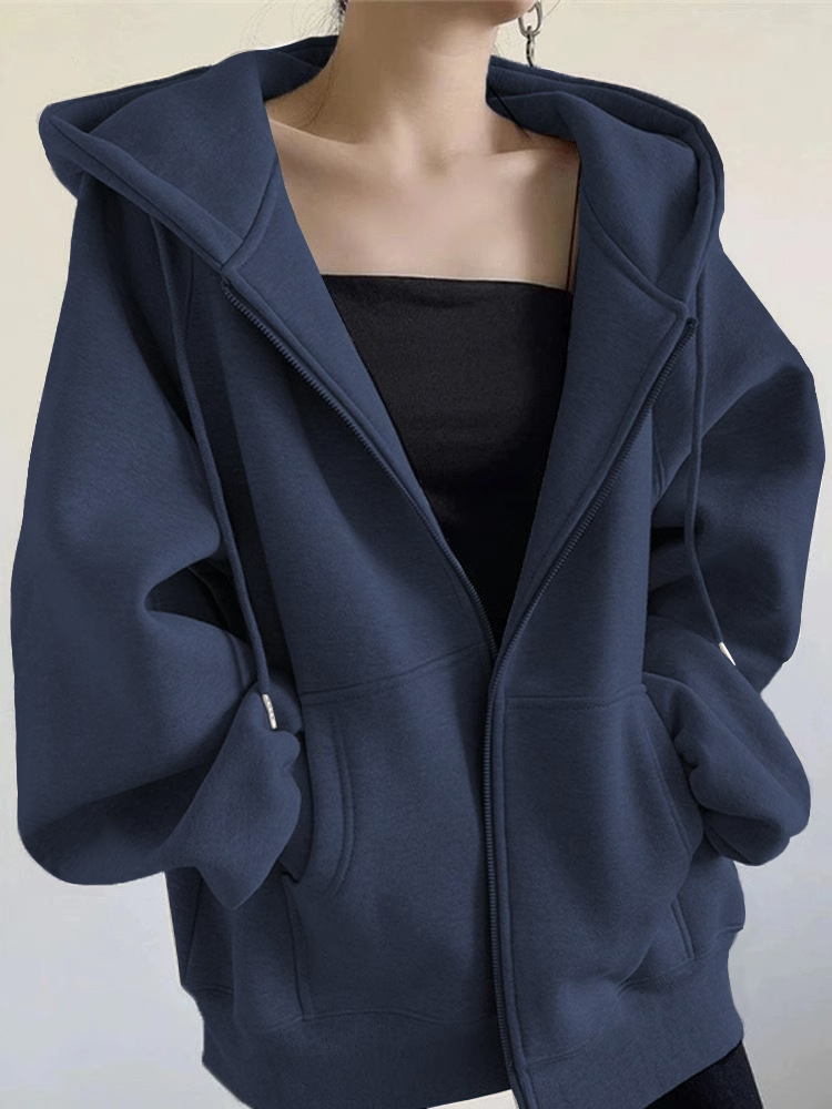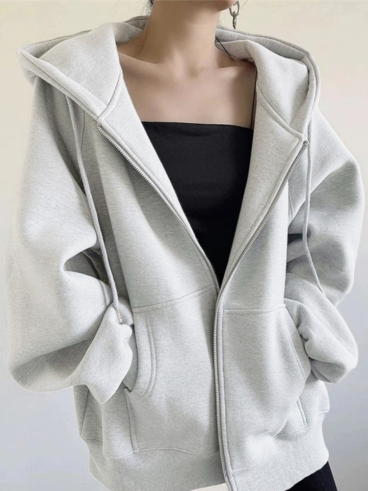 纯棉连帽卫衣女春秋新款高街宽松简约ins加绒加厚开衫拉链外套女