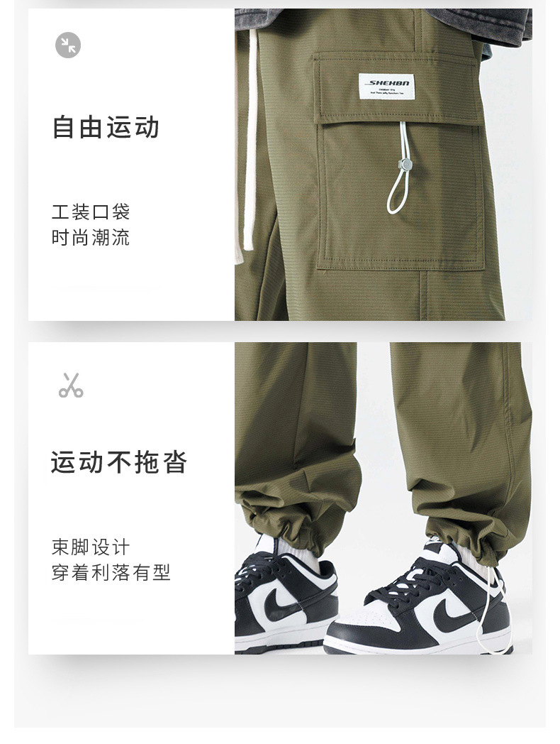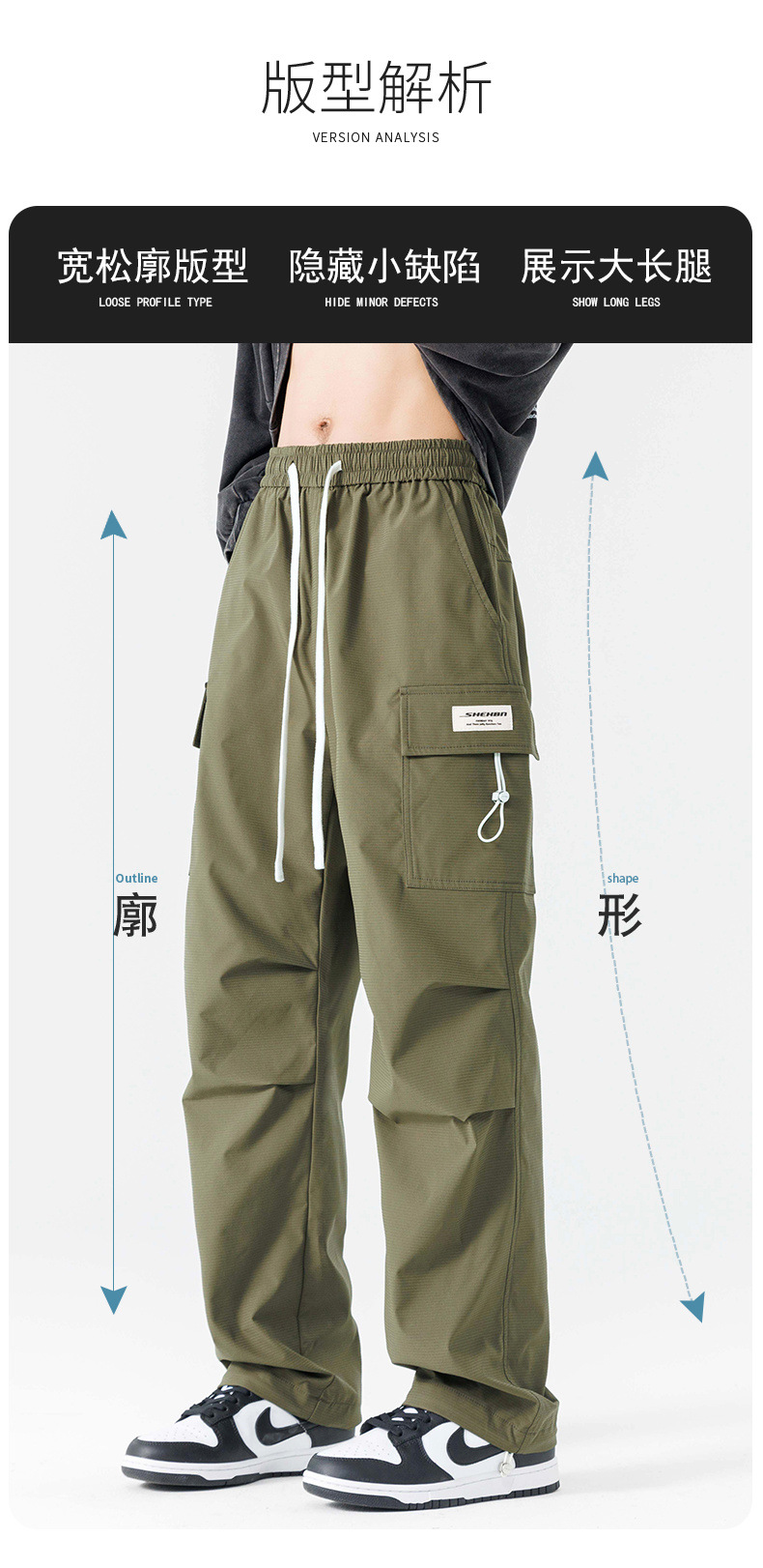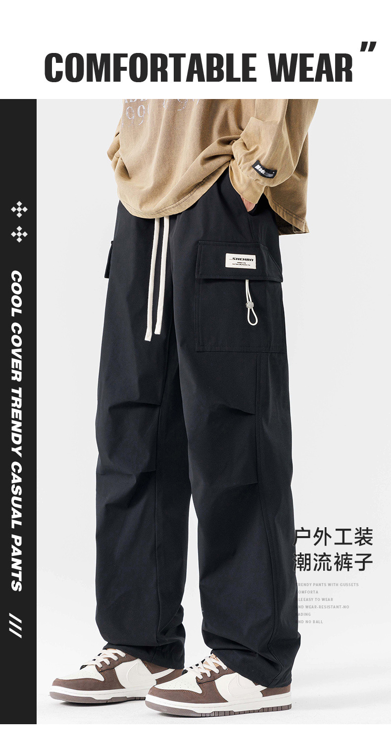 工装裤男秋季高腰阔腿直筒裤子设计感潮牌登山户外运动休闲裤长裤