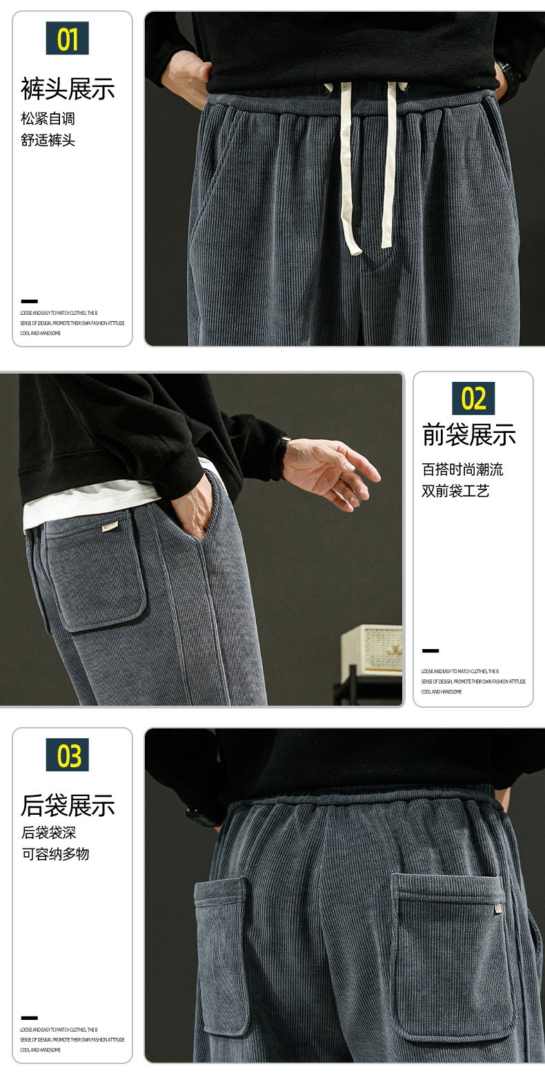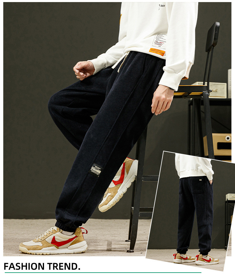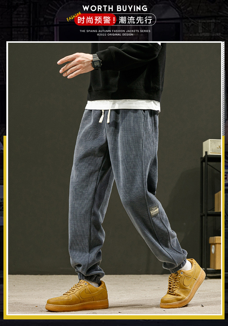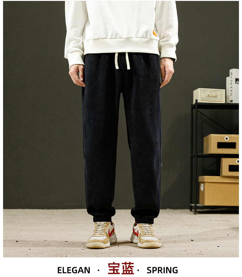 灯芯绒裤子男秋冬款潮流束脚男士休闲运动裤宽松青年哈