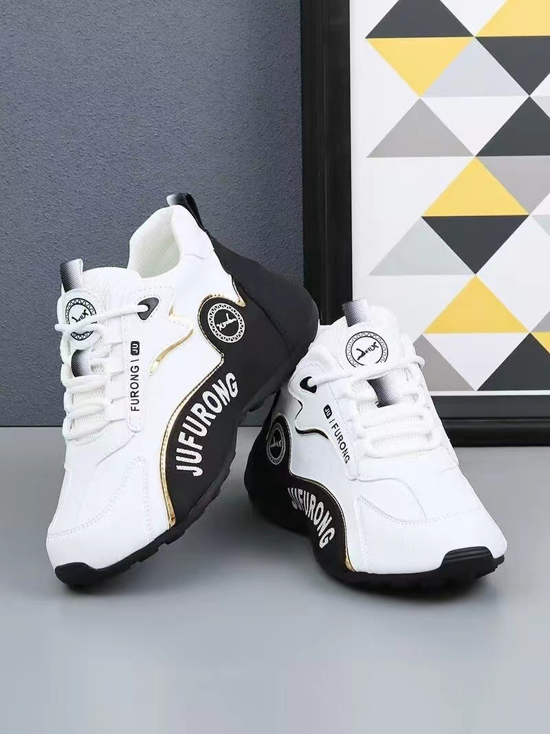 男女同款皮面运动休闲鞋老爹鞋花样机款纹路软底皮面拼色批发男鞋