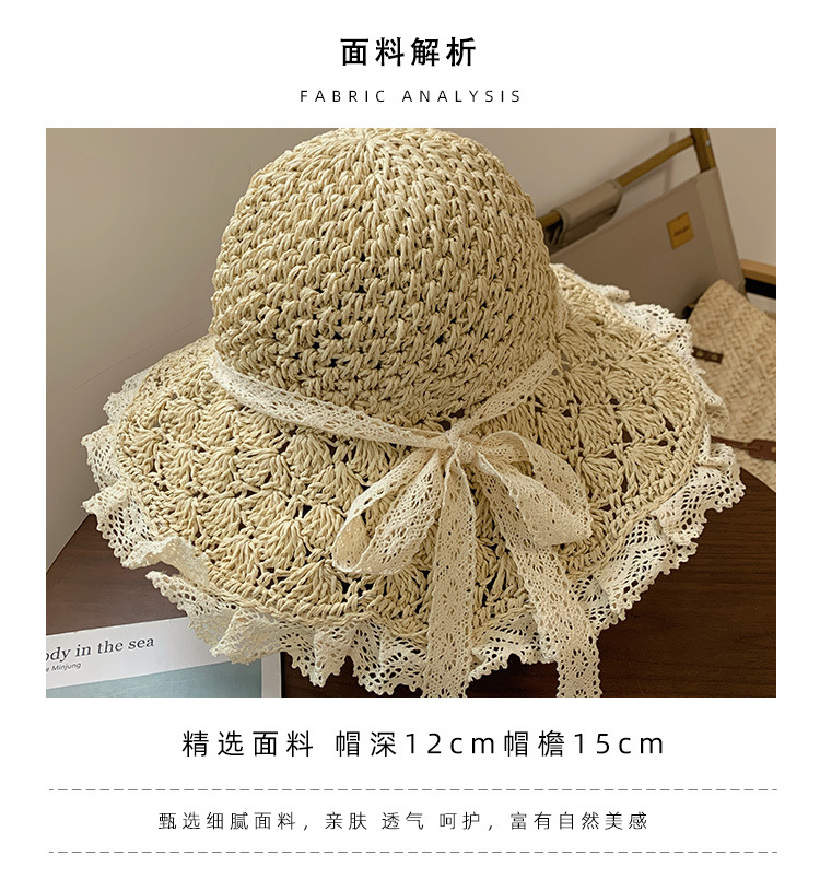 镂空飘带草帽女夏季海边度假草编遮阳防晒帽日系沙滩甜美