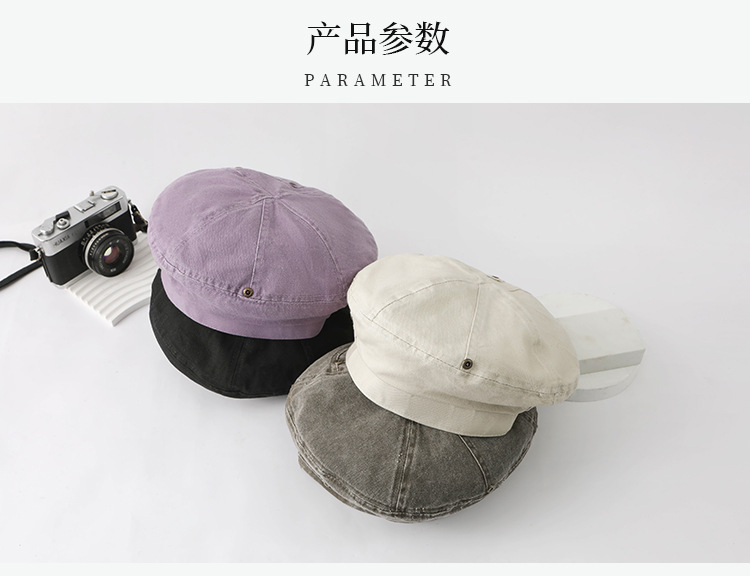 暗黑风水洗做旧复古贝雷帽女日韩百搭气质大头围口袋蓓蕾帽显脸小