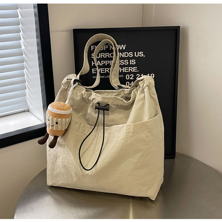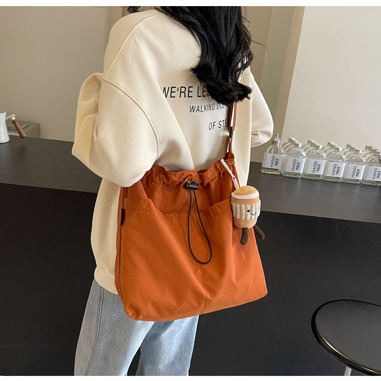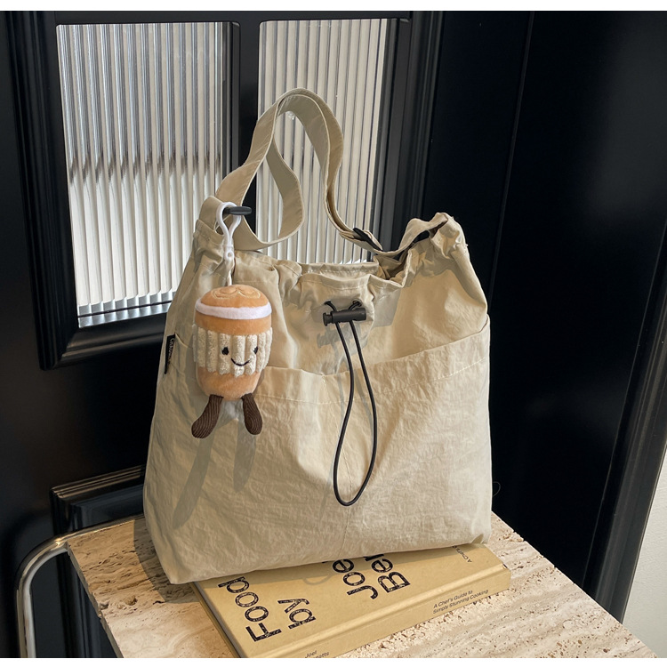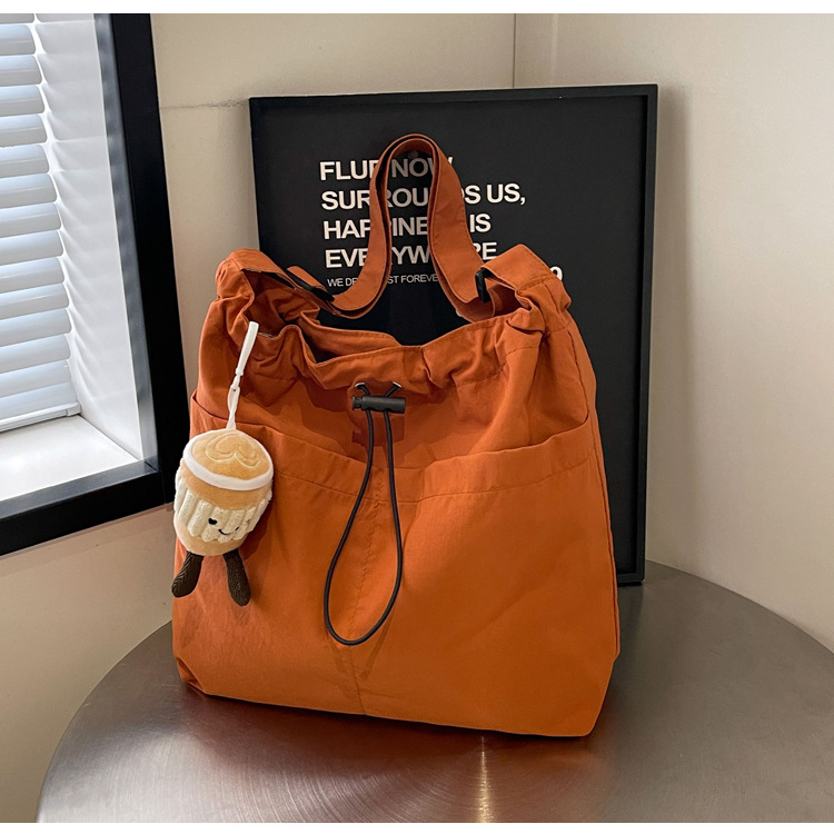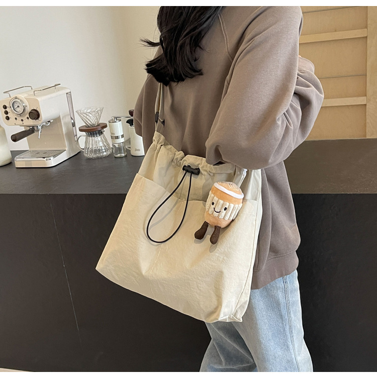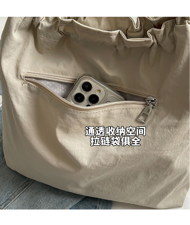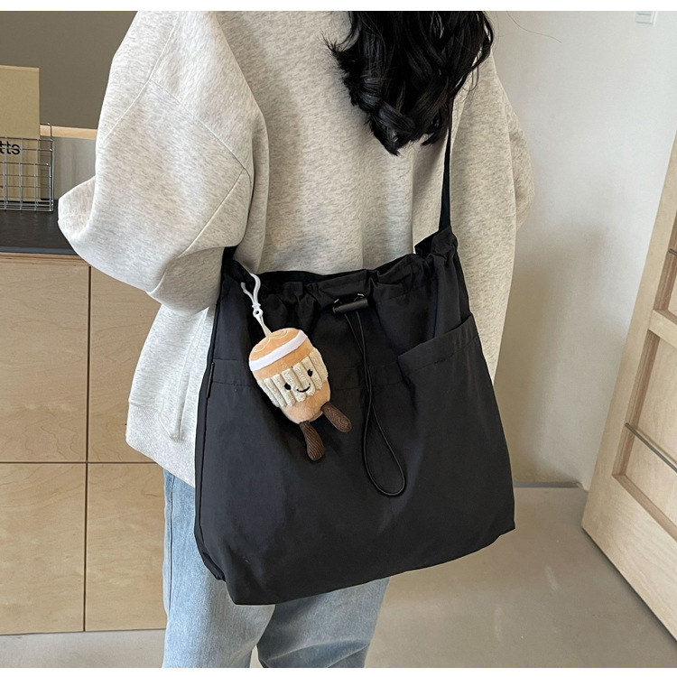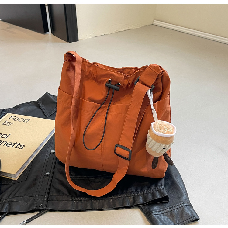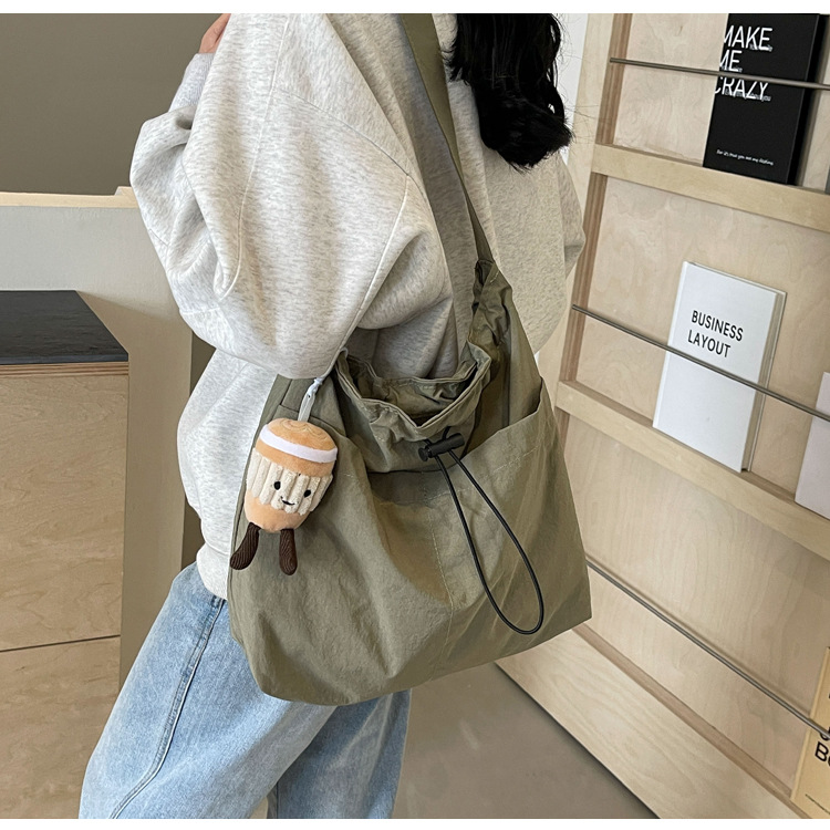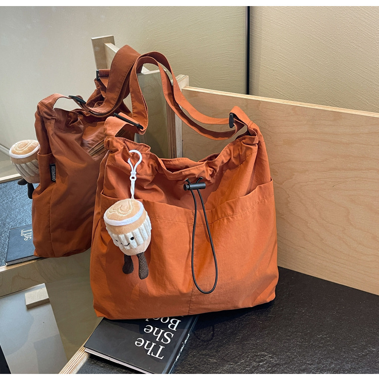 新款小众休闲文艺帆布水桶包时尚抽绳单肩女包网红褶皱尼龙斜挎包