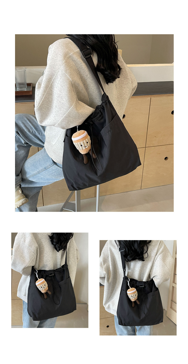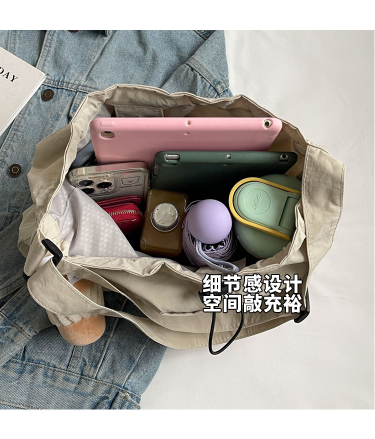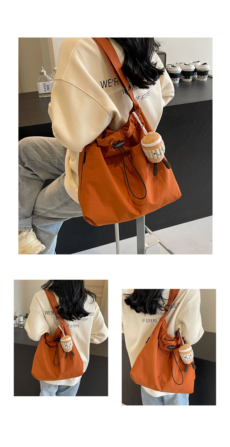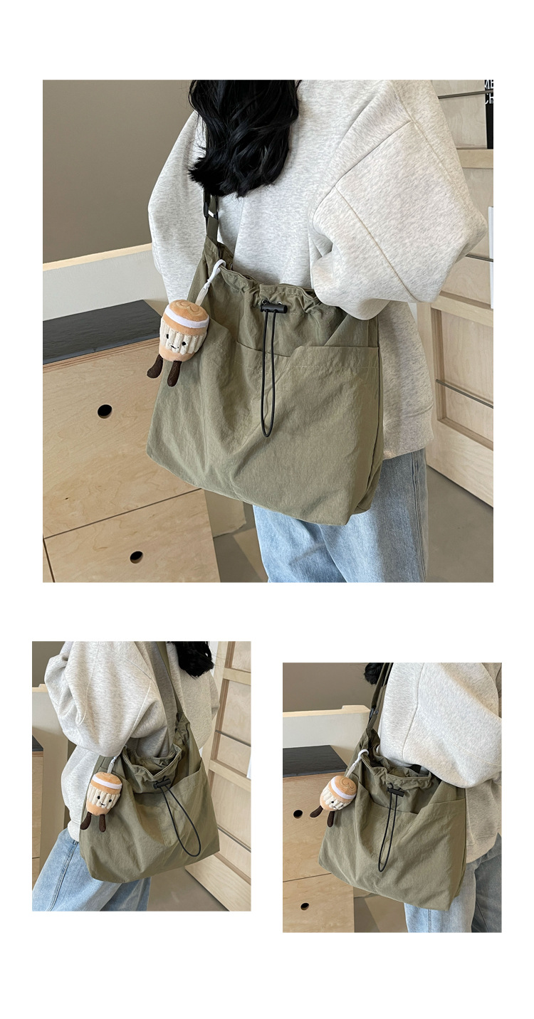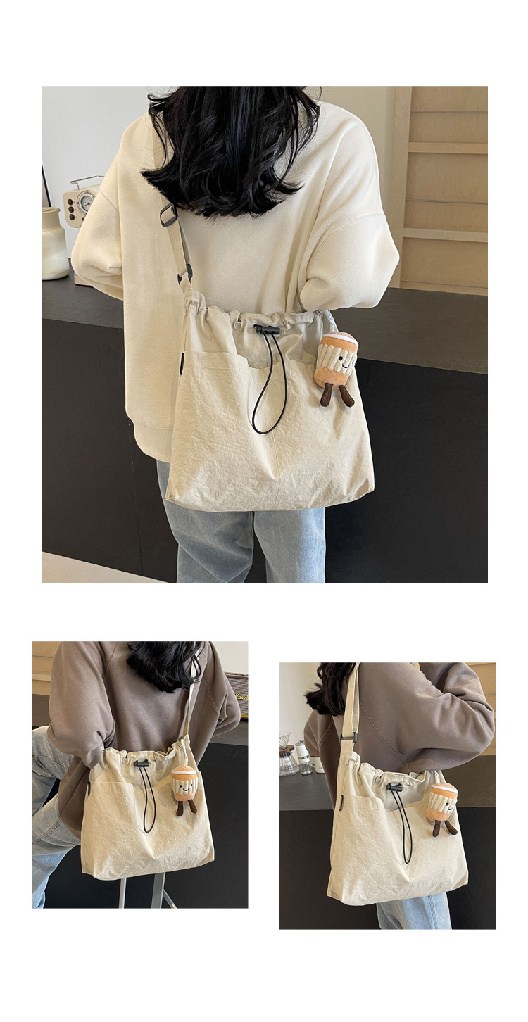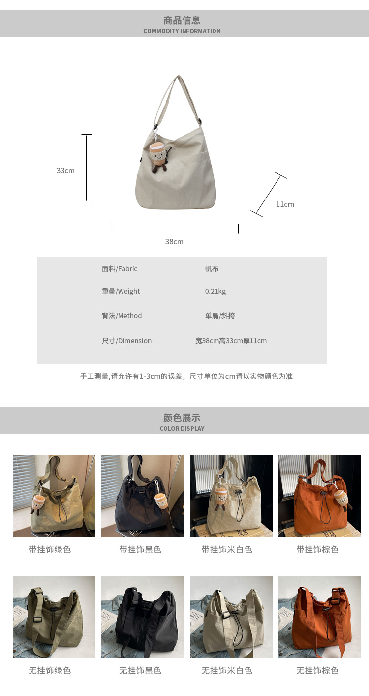 新款小众休闲文艺帆布水桶包时尚抽绳单肩女包网红褶皱尼龙斜挎包