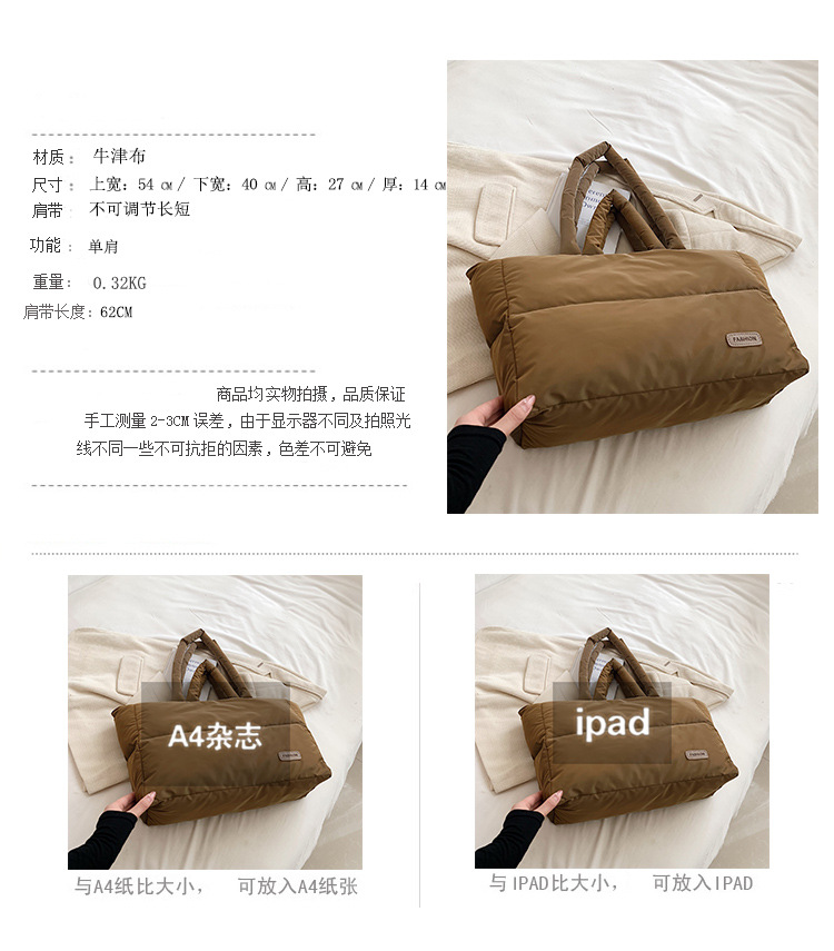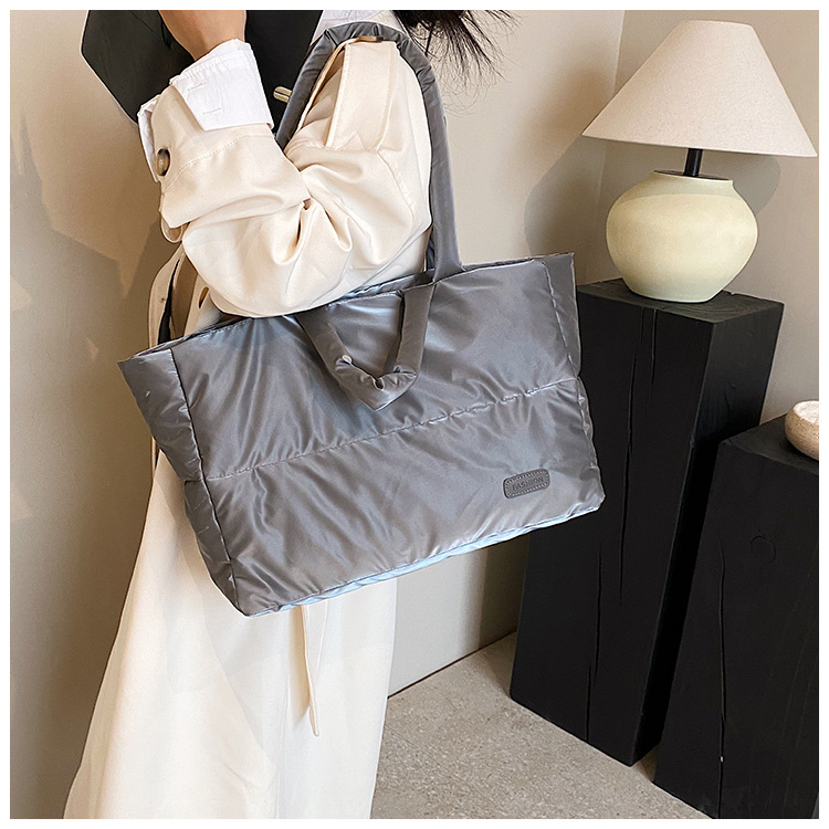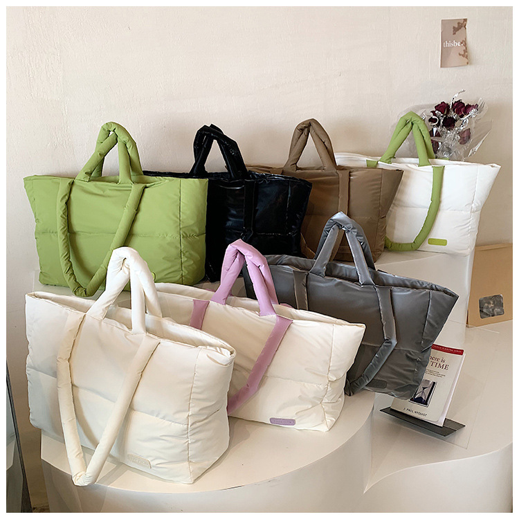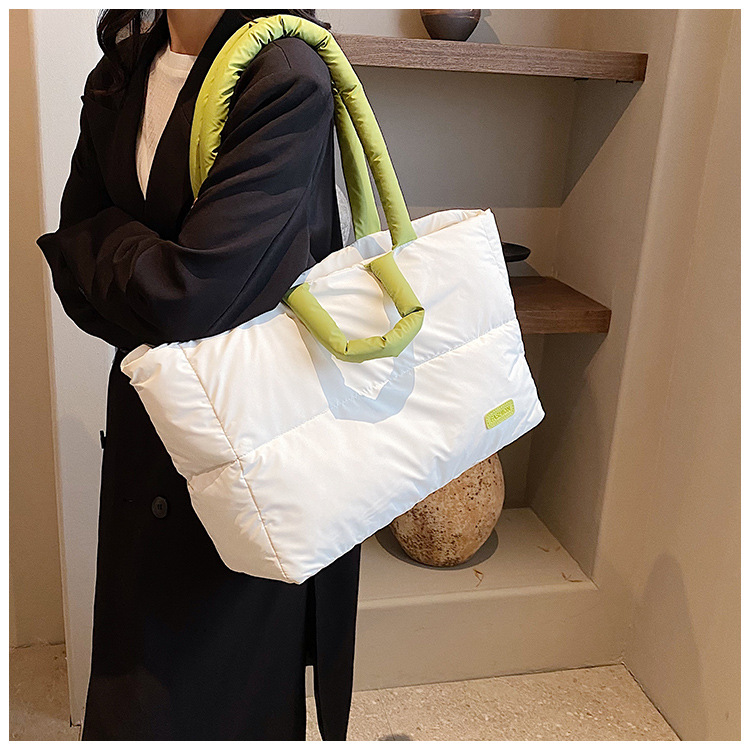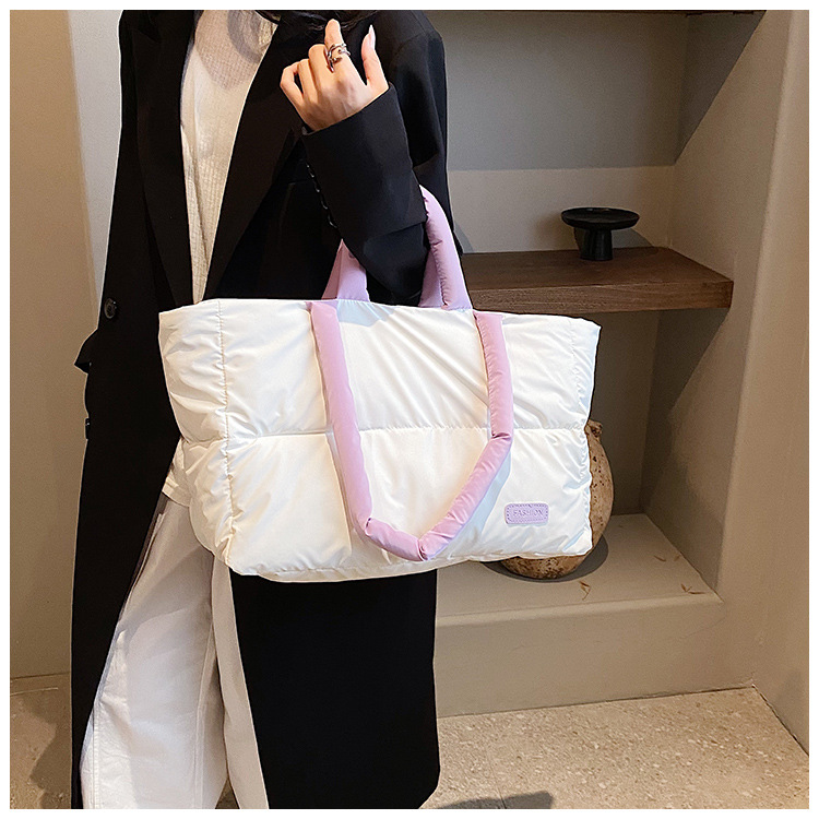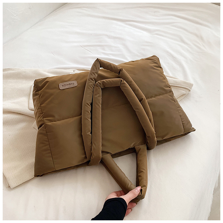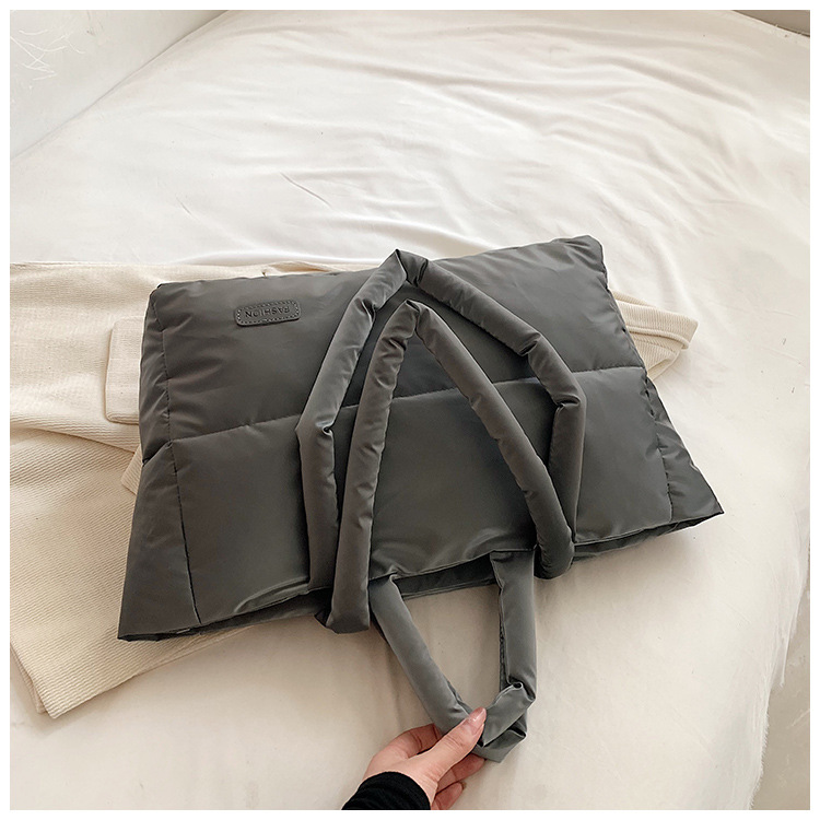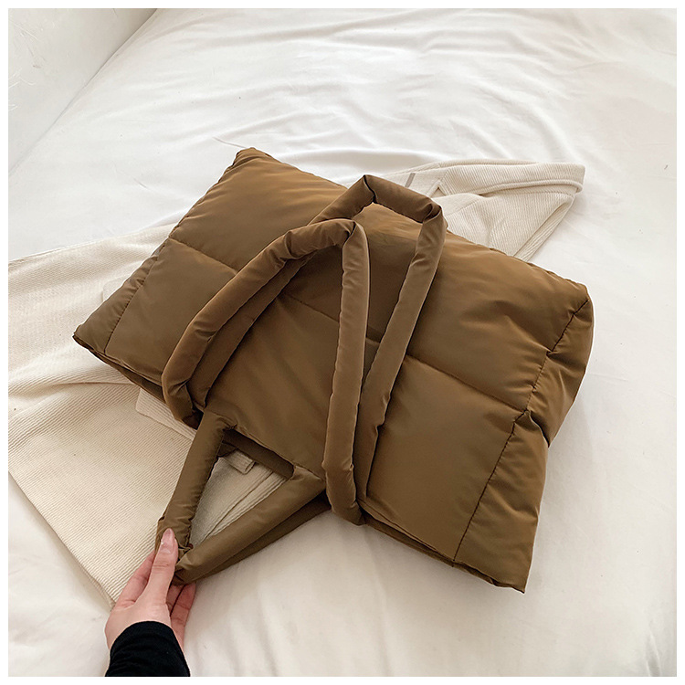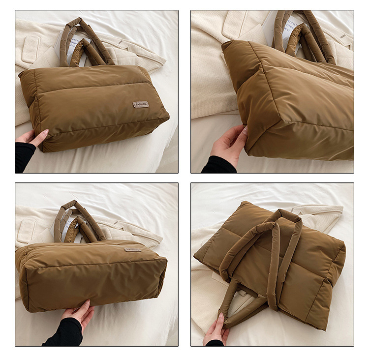 秋冬新款菱格棉服羽绒包大容量女流行小众单肩手提包通勤