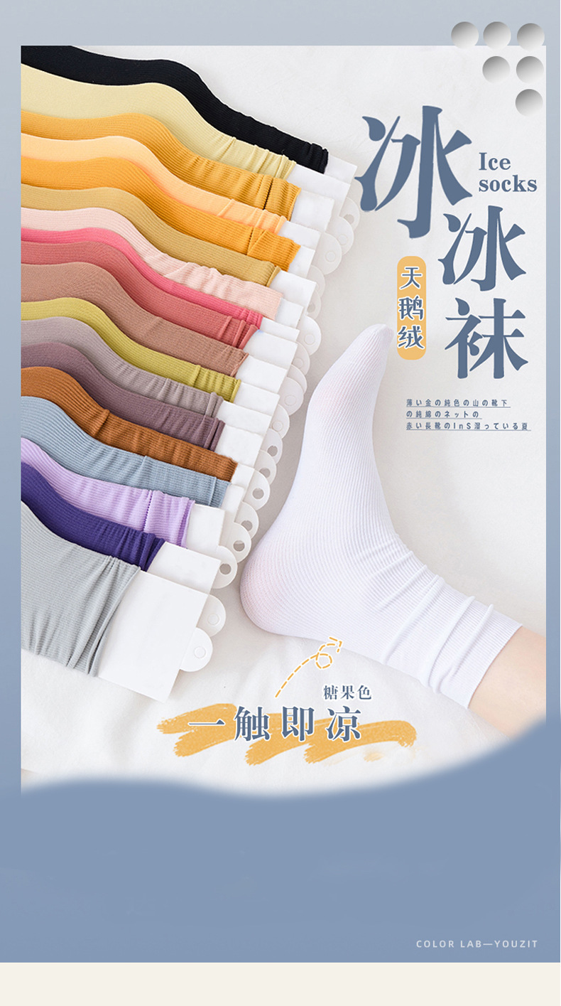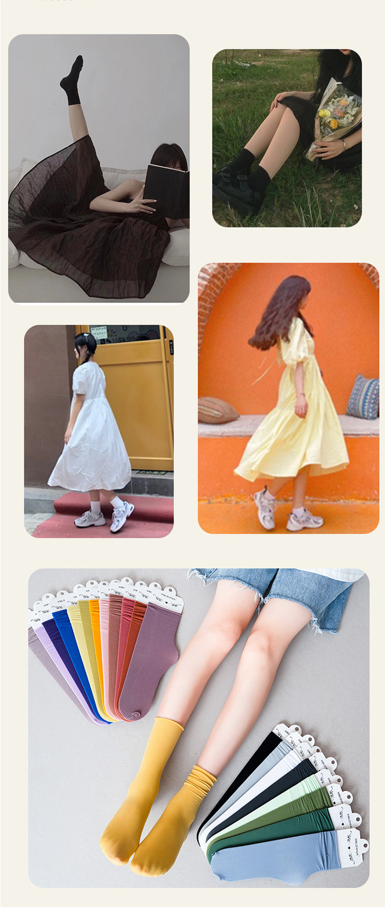 冰冰袜子女批发夏款夏季薄款中筒袜黑白色堆堆袜女冰丝袜夏天长袜