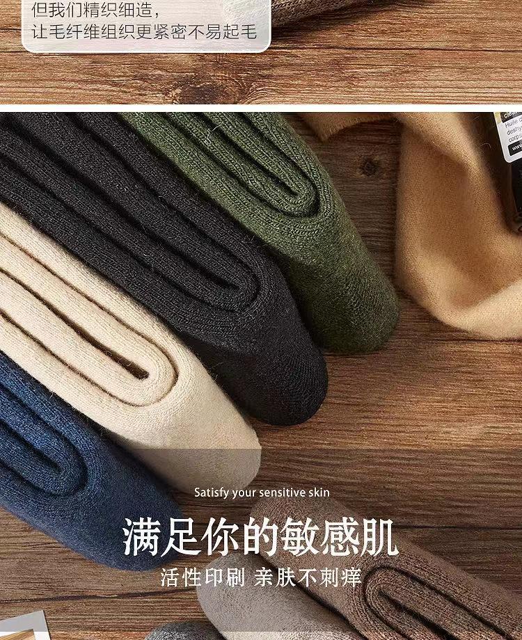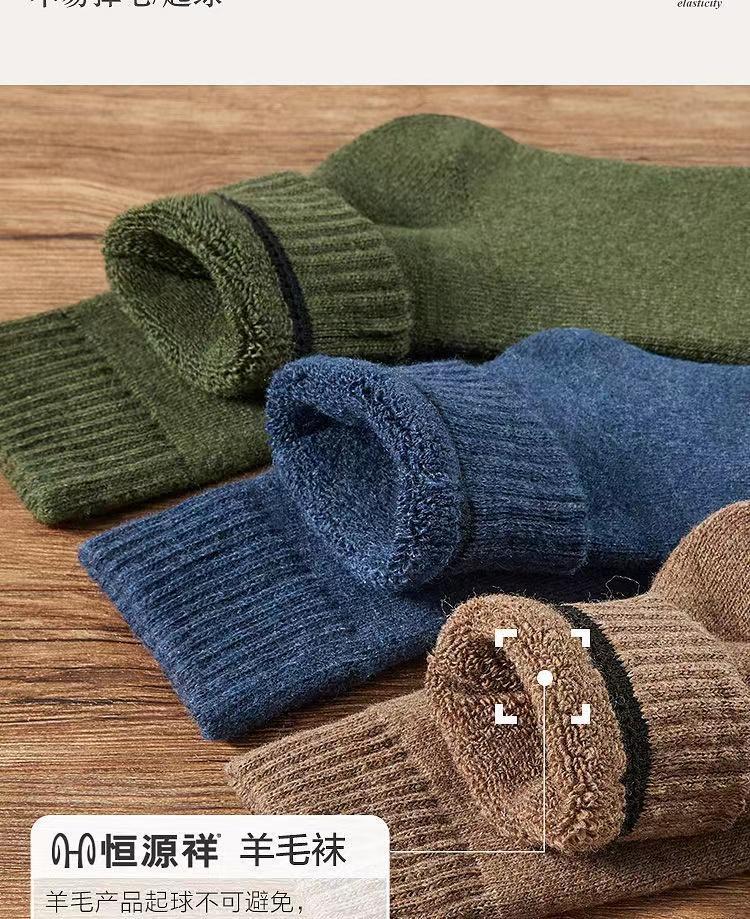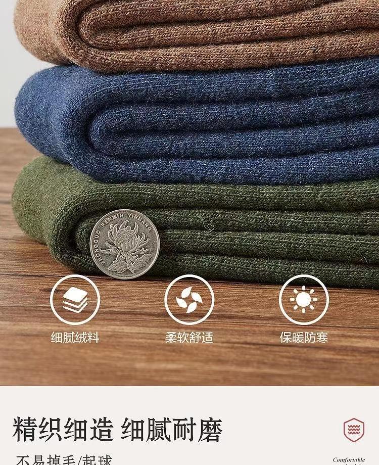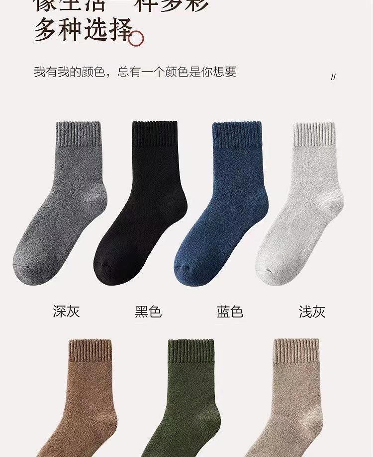 羊毛袜子秋冬加绒加厚男士女士袜保暖纯色毛圈袜雪地女士中筒袜子
