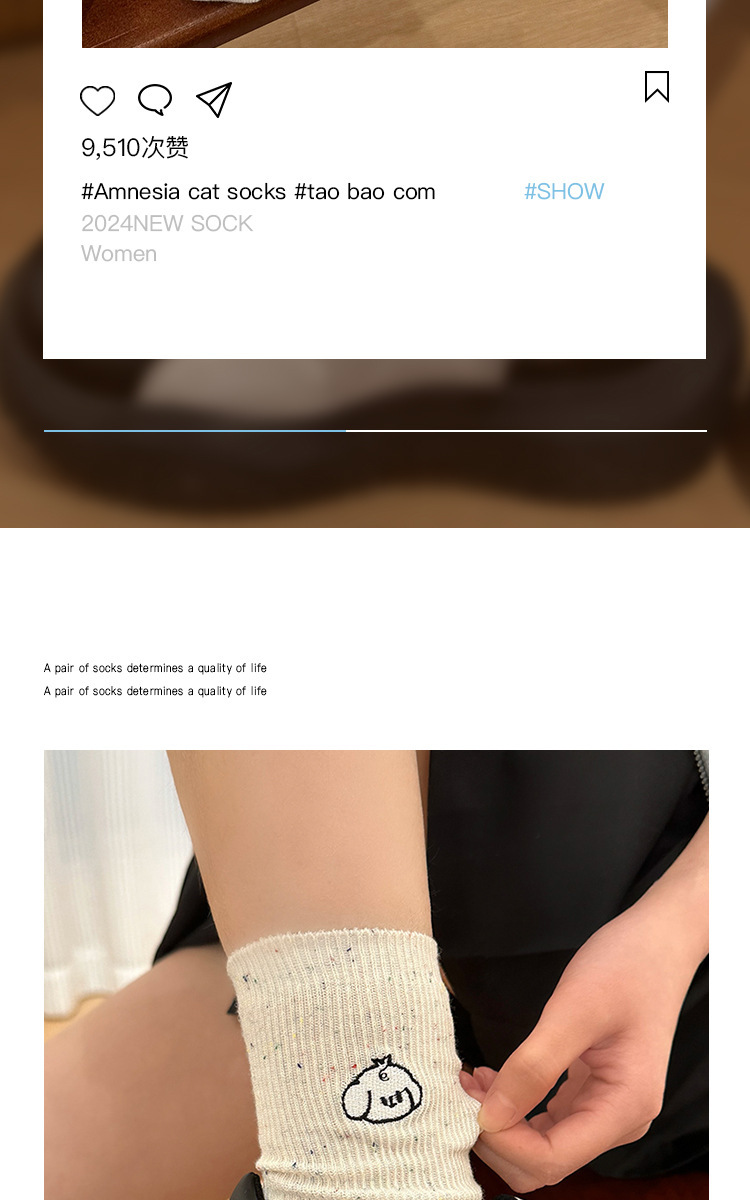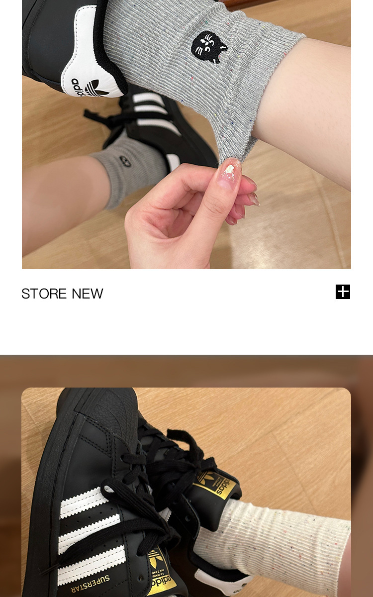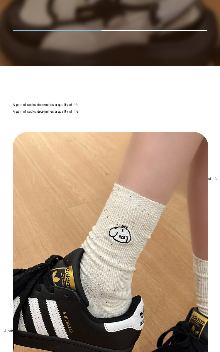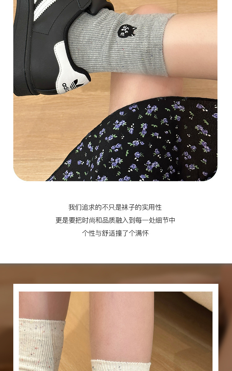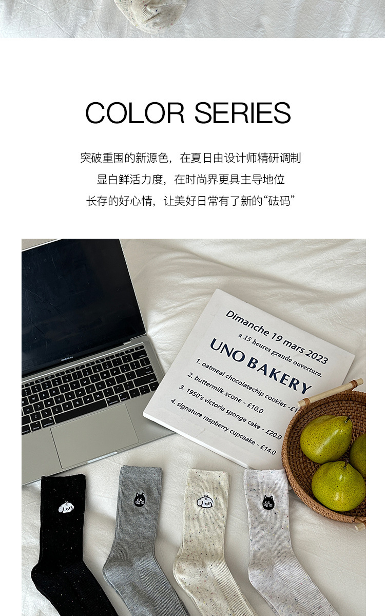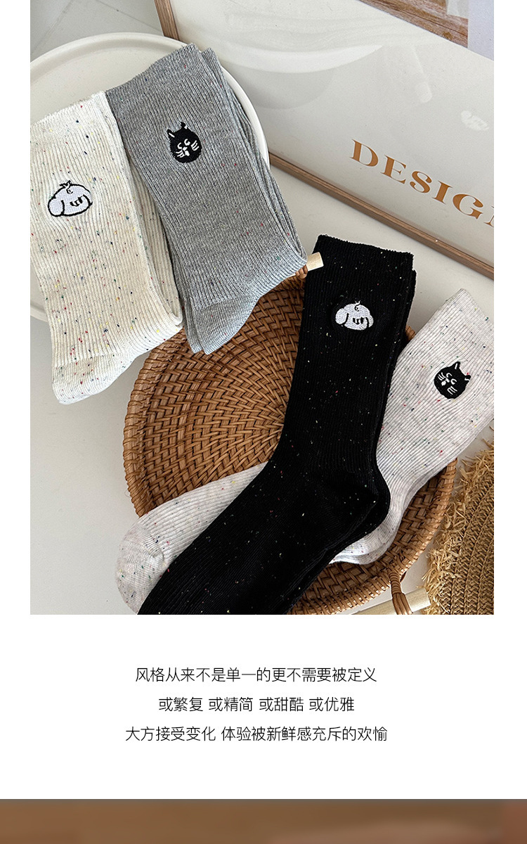 卡通刺绣袜子女春秋款棉袜中筒袜韩版ins潮点子纱堆堆袜夏季薄款