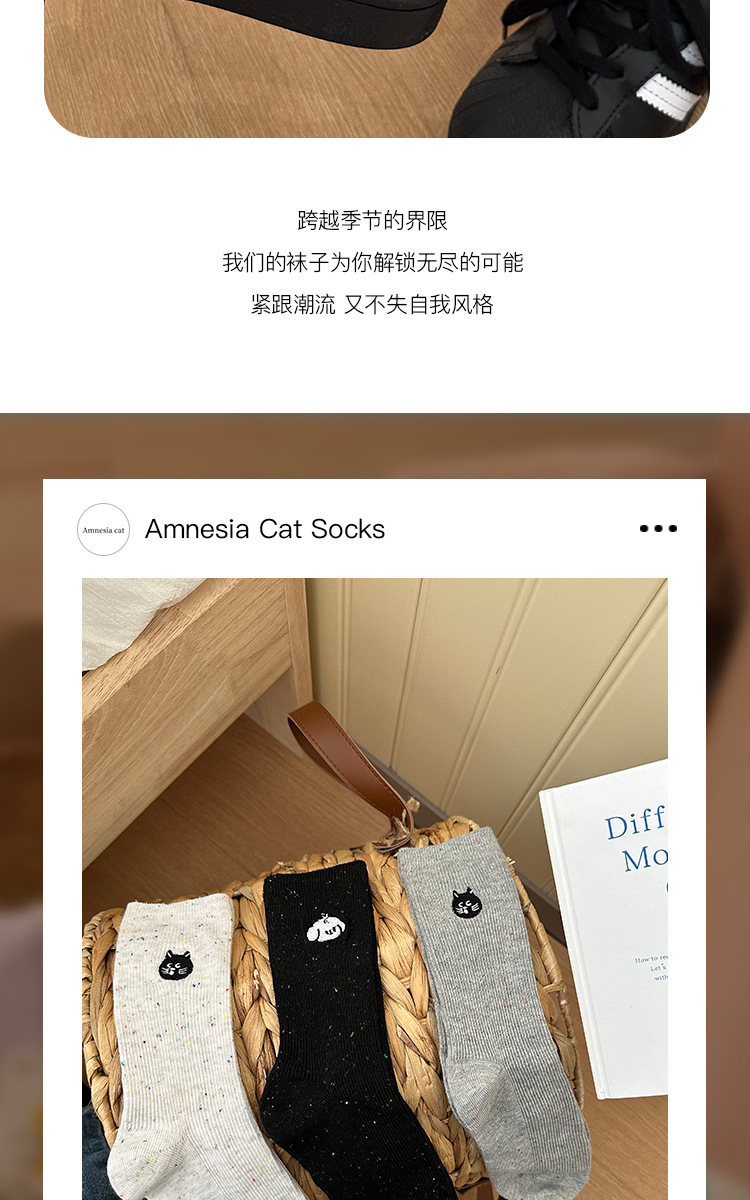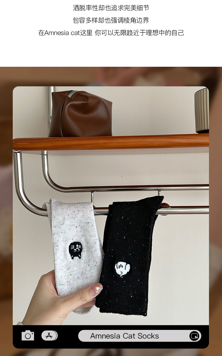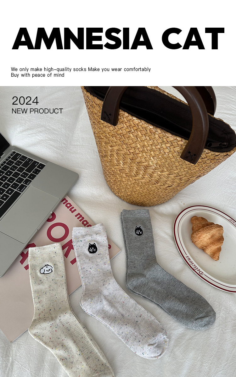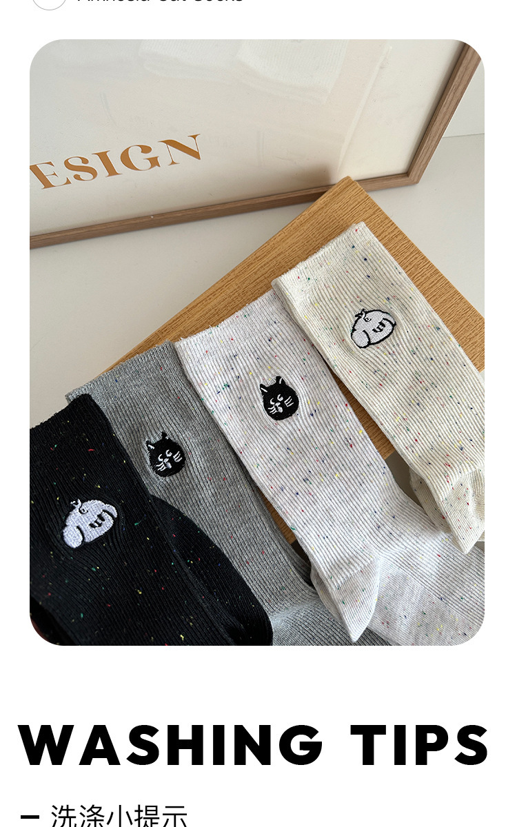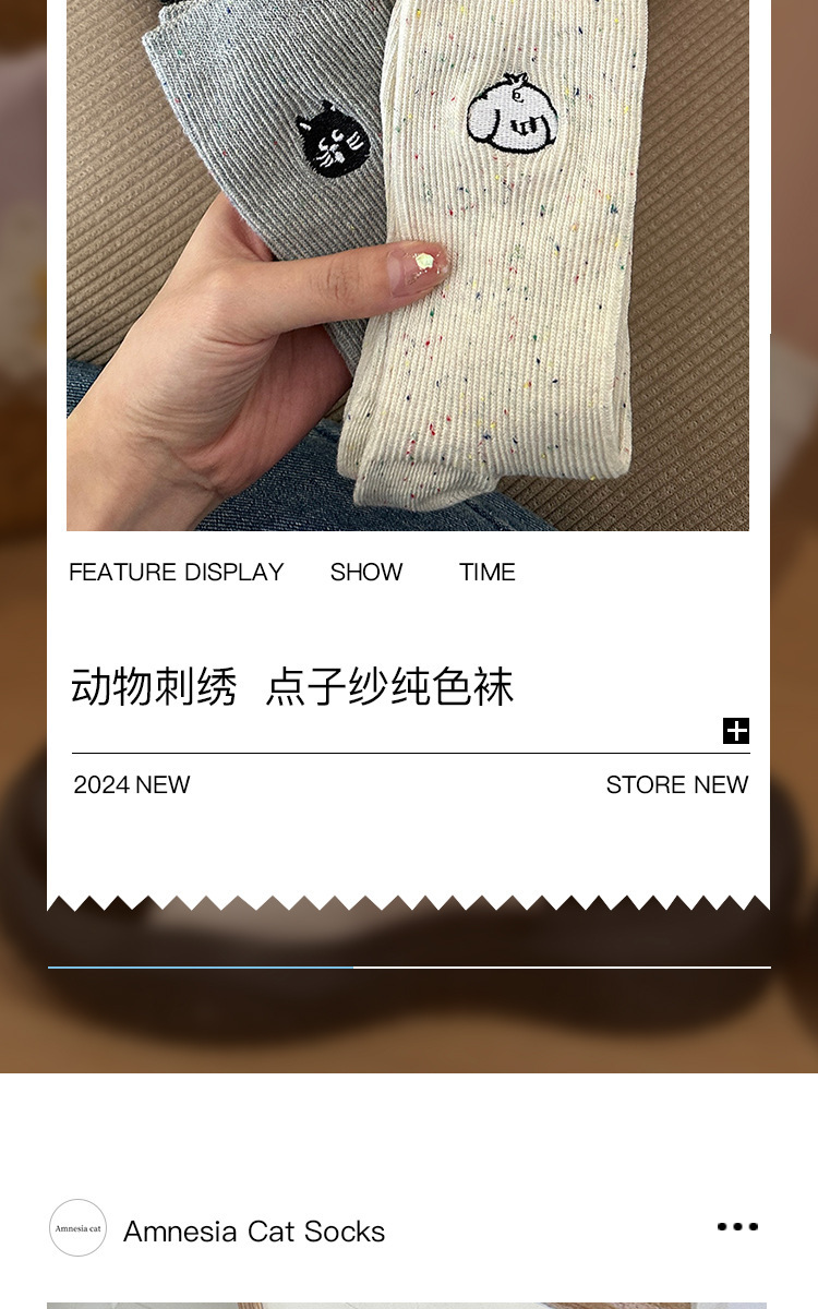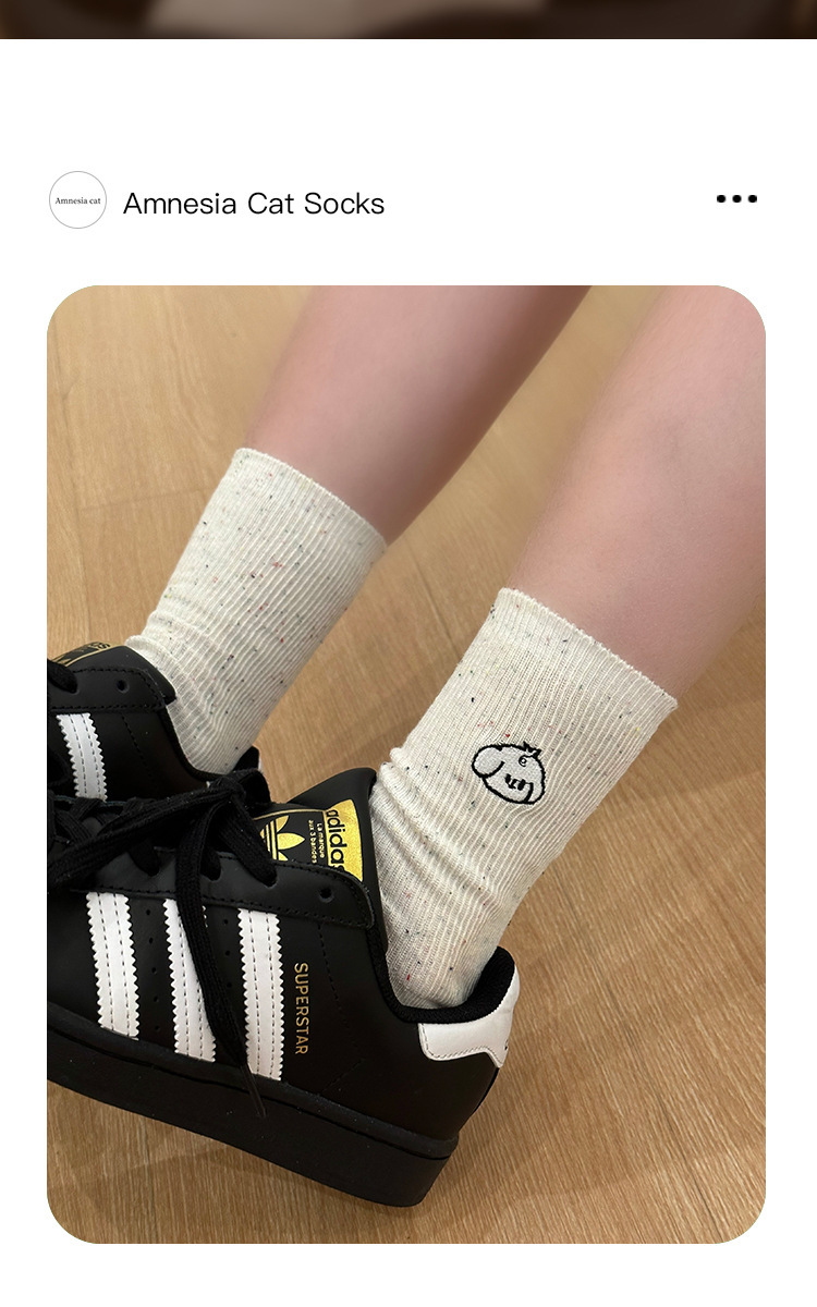 卡通刺绣袜子女春秋款棉袜中筒袜韩版ins潮点子纱堆堆袜夏季薄款