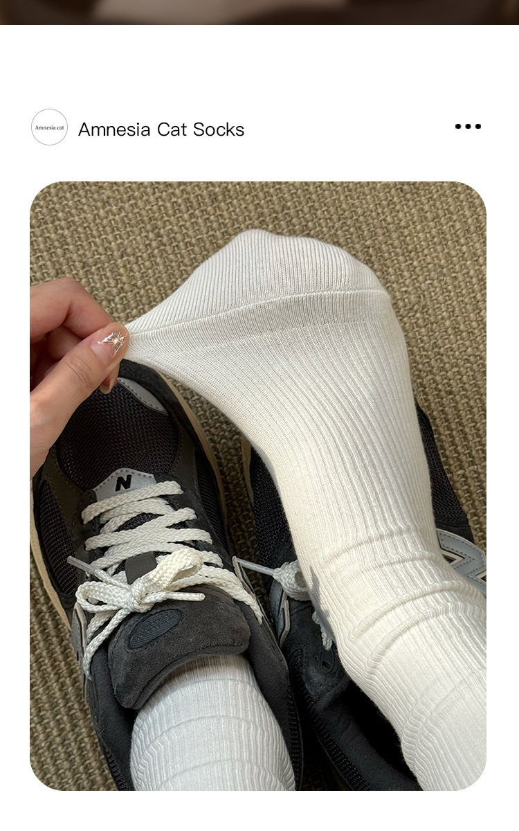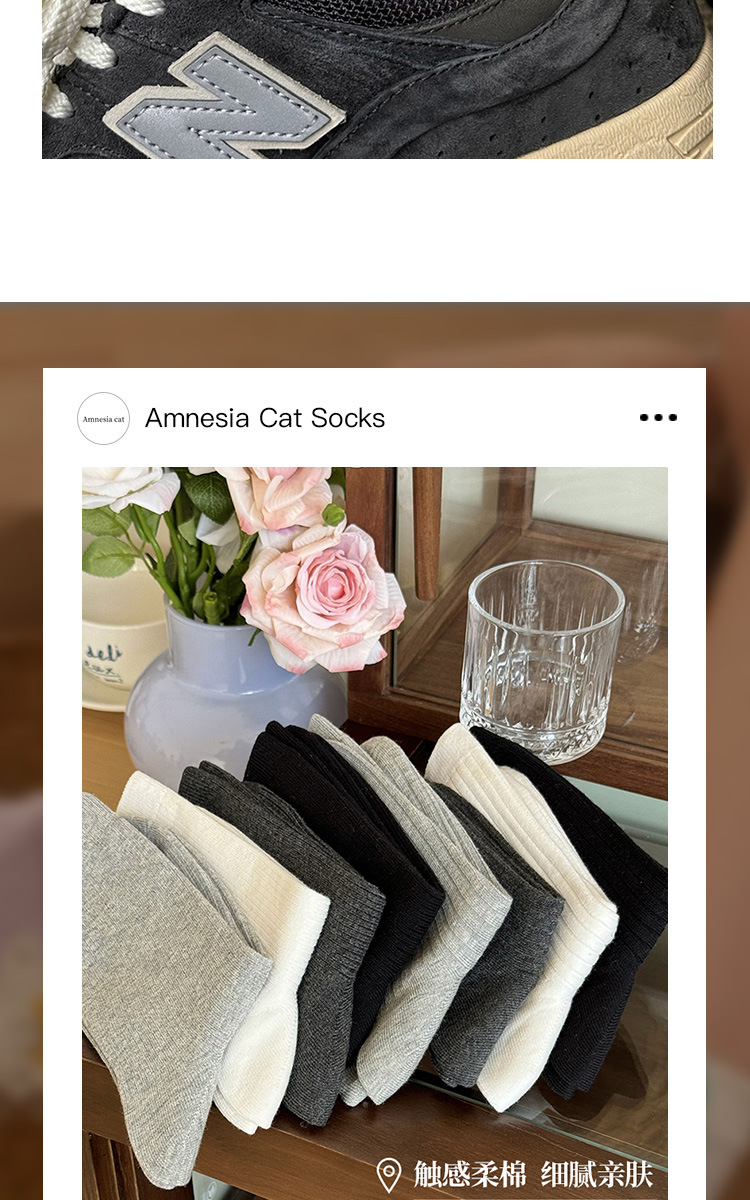 灰色袜子女中筒袜春秋纯棉德训鞋长袜白色夏季薄款堆堆袜配小皮鞋
