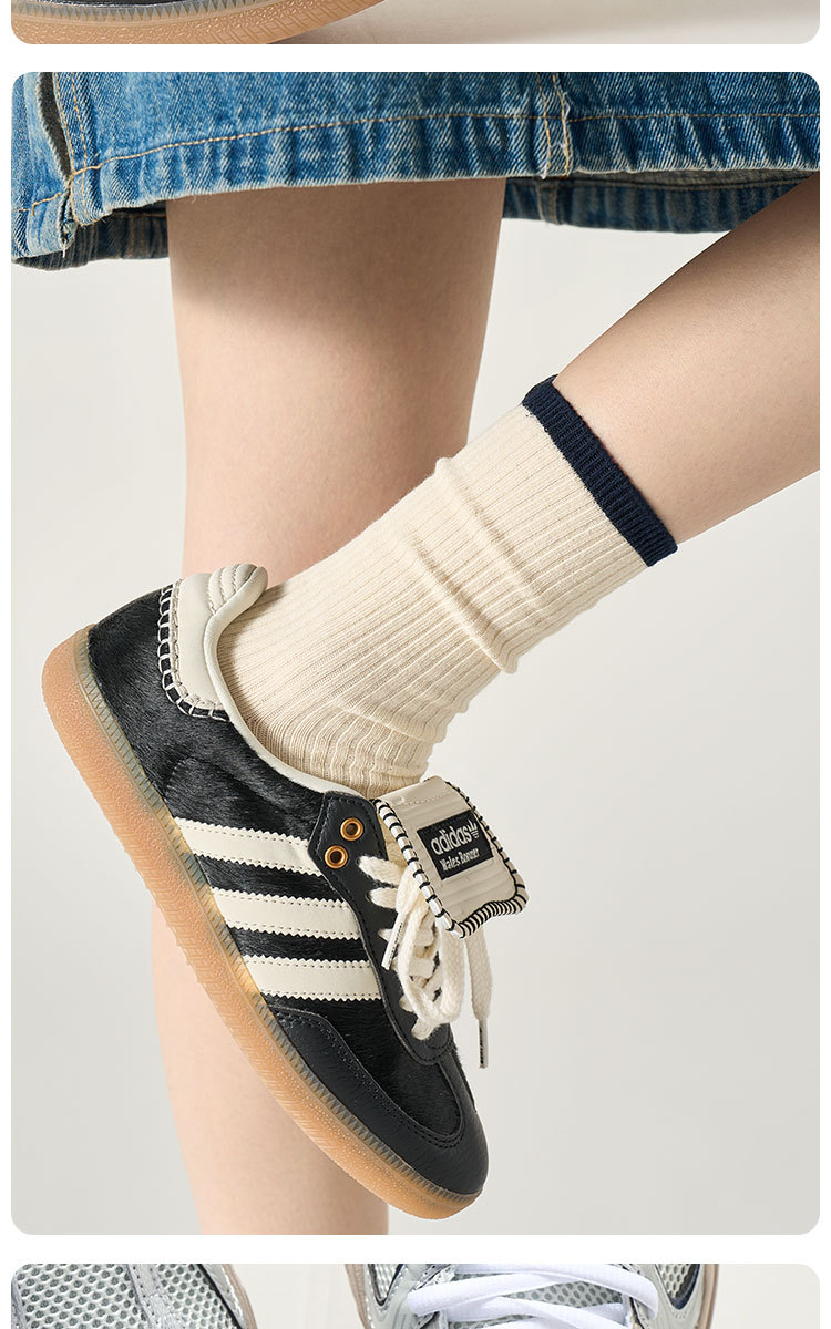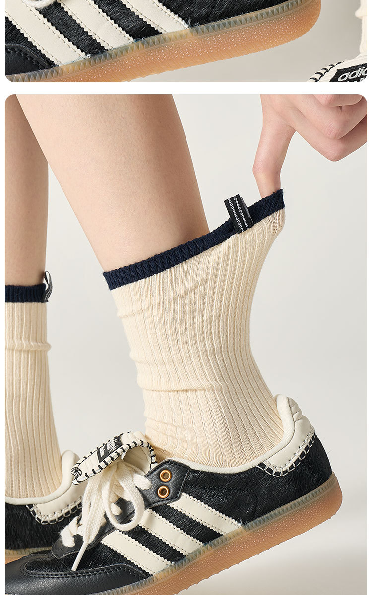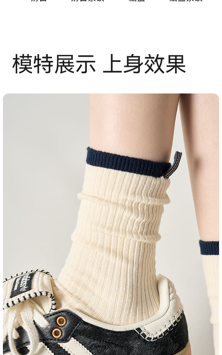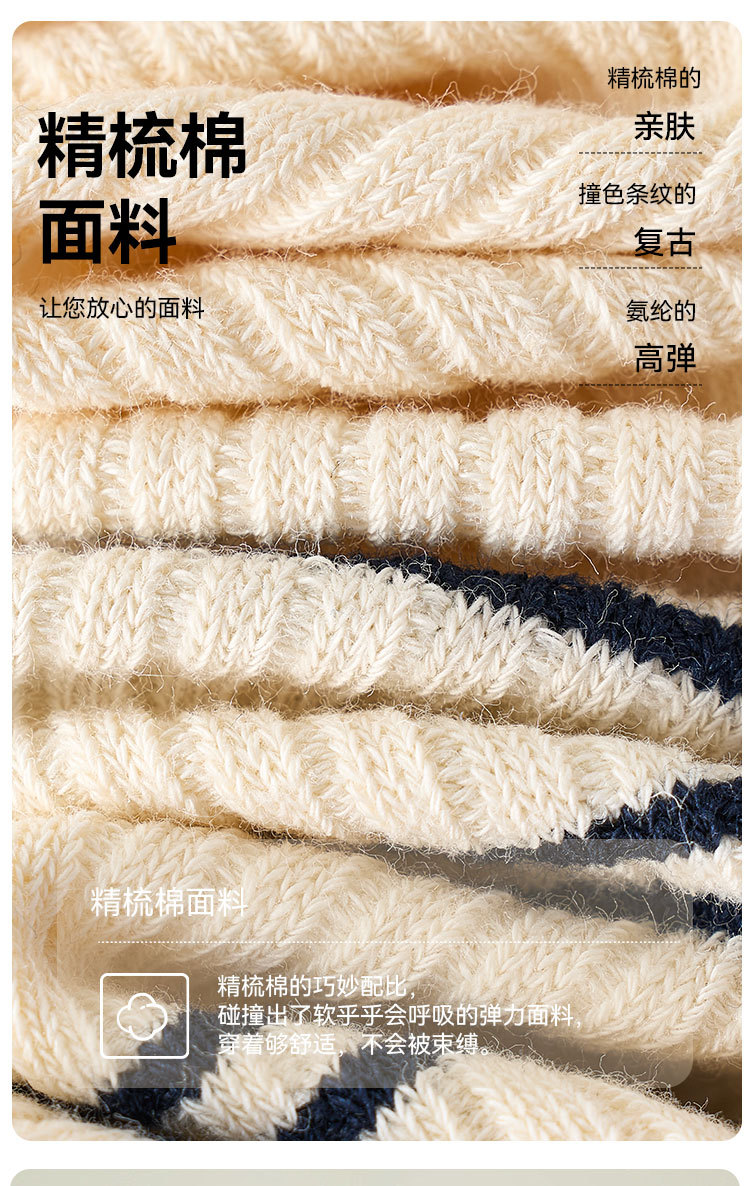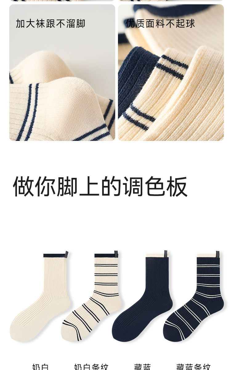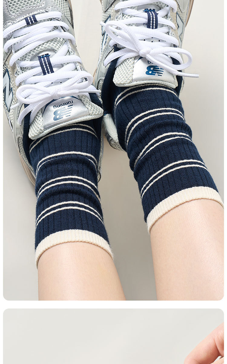 条纹袜子女春秋纯棉中筒袜ins潮韩版布标长袜配勃肯鞋堆堆袜秋冬