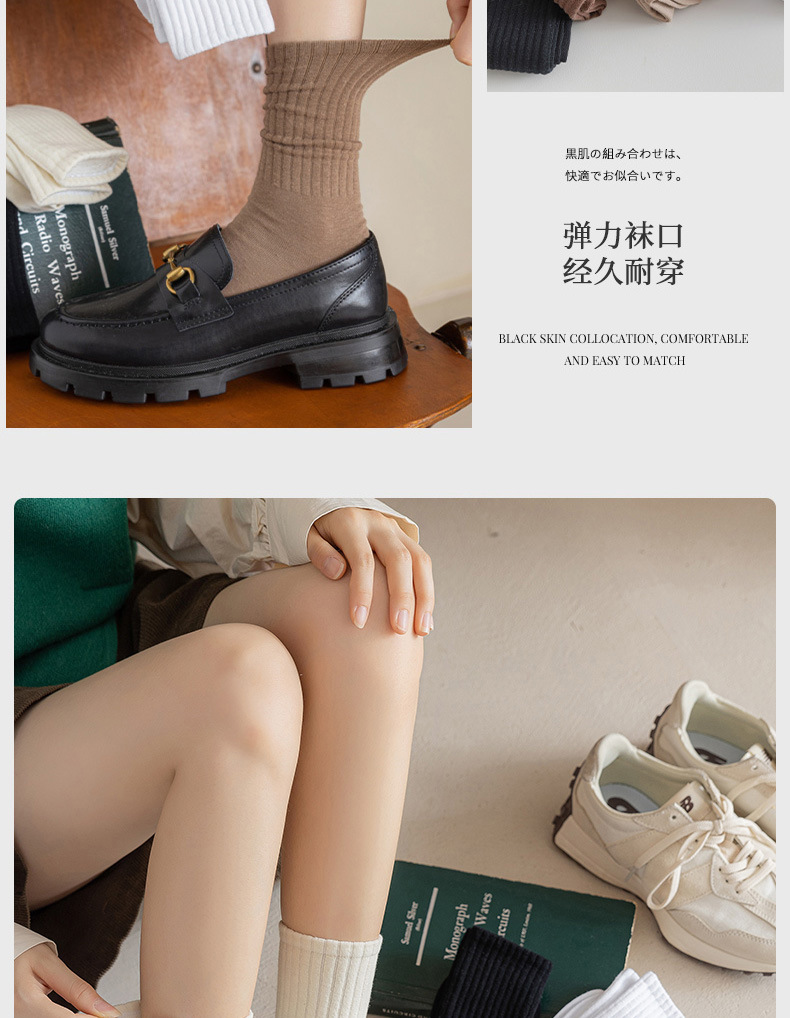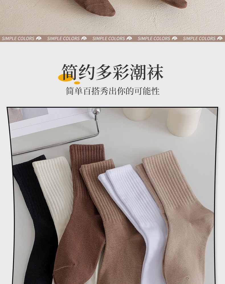 女款中筒无骨堆堆袜子 春秋冬季黑白月子长袜网红ins潮流棉袜批发