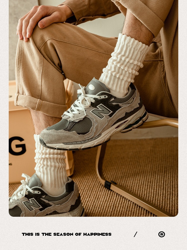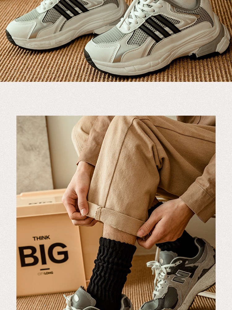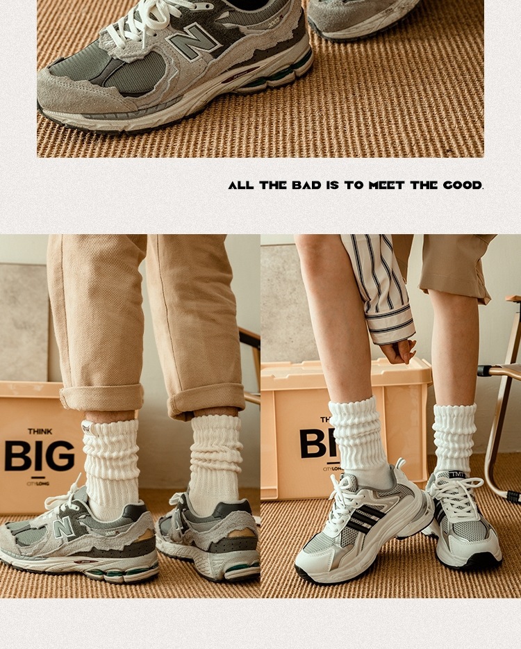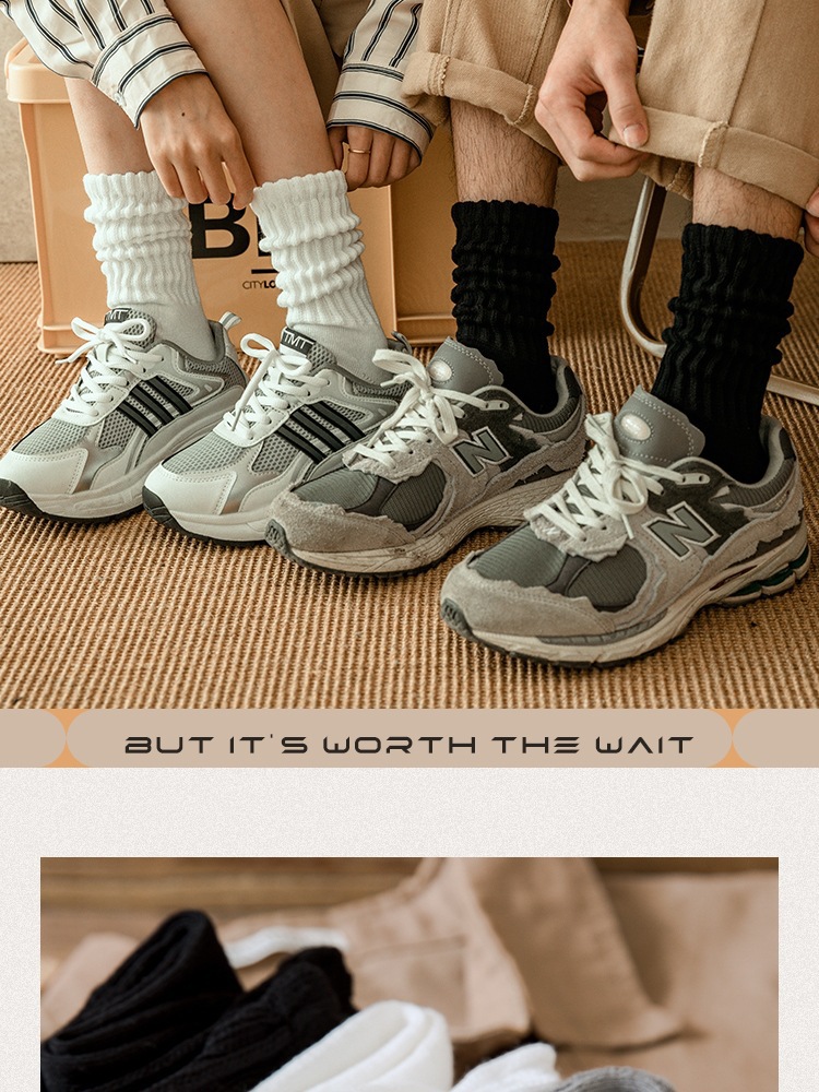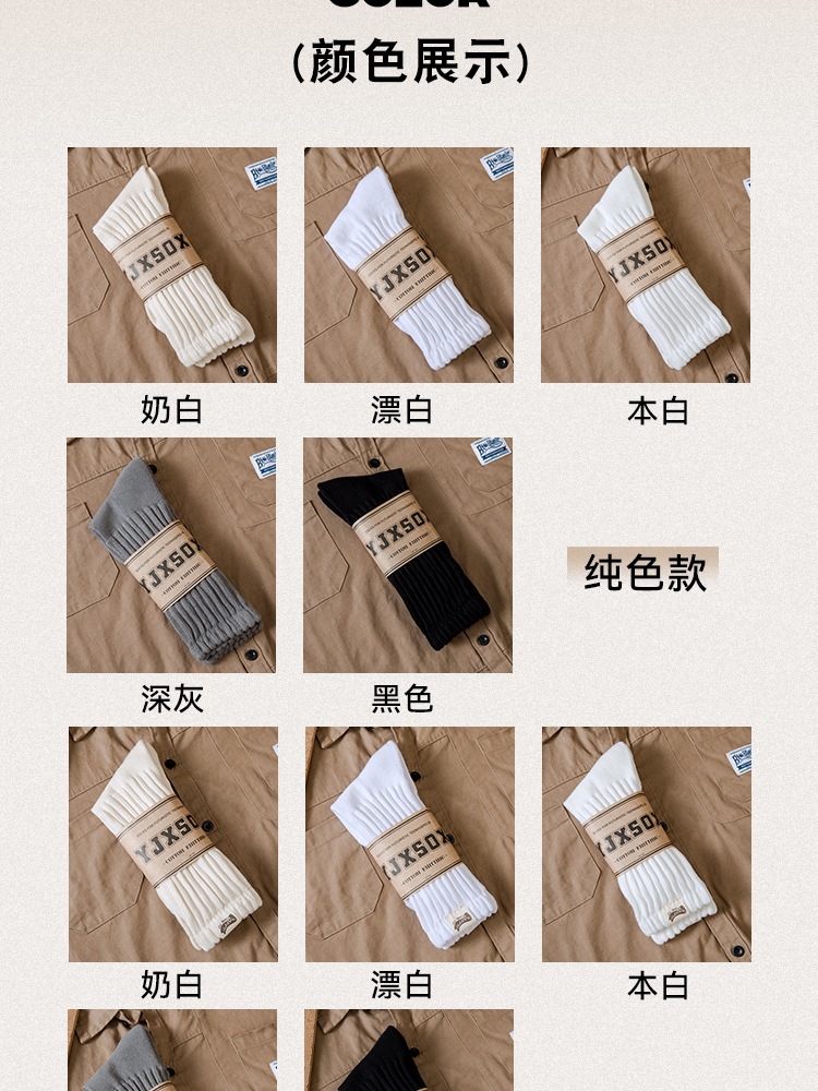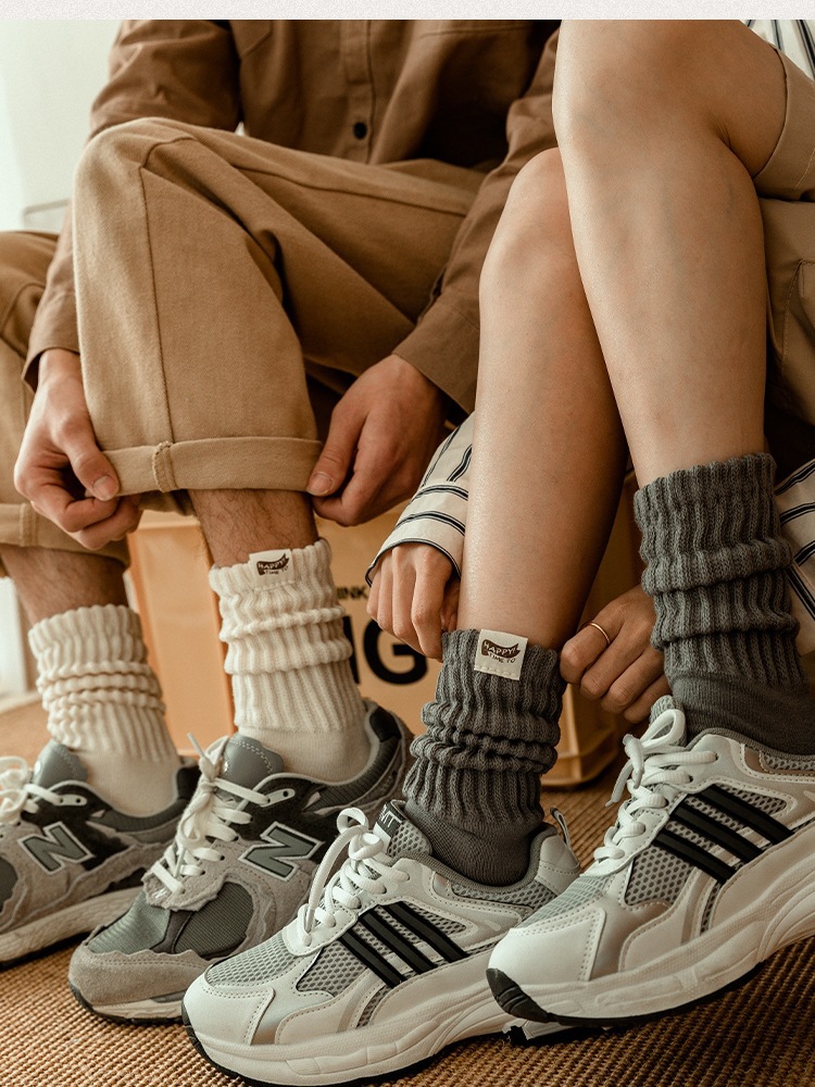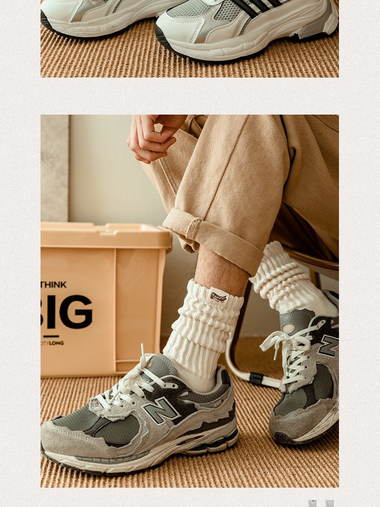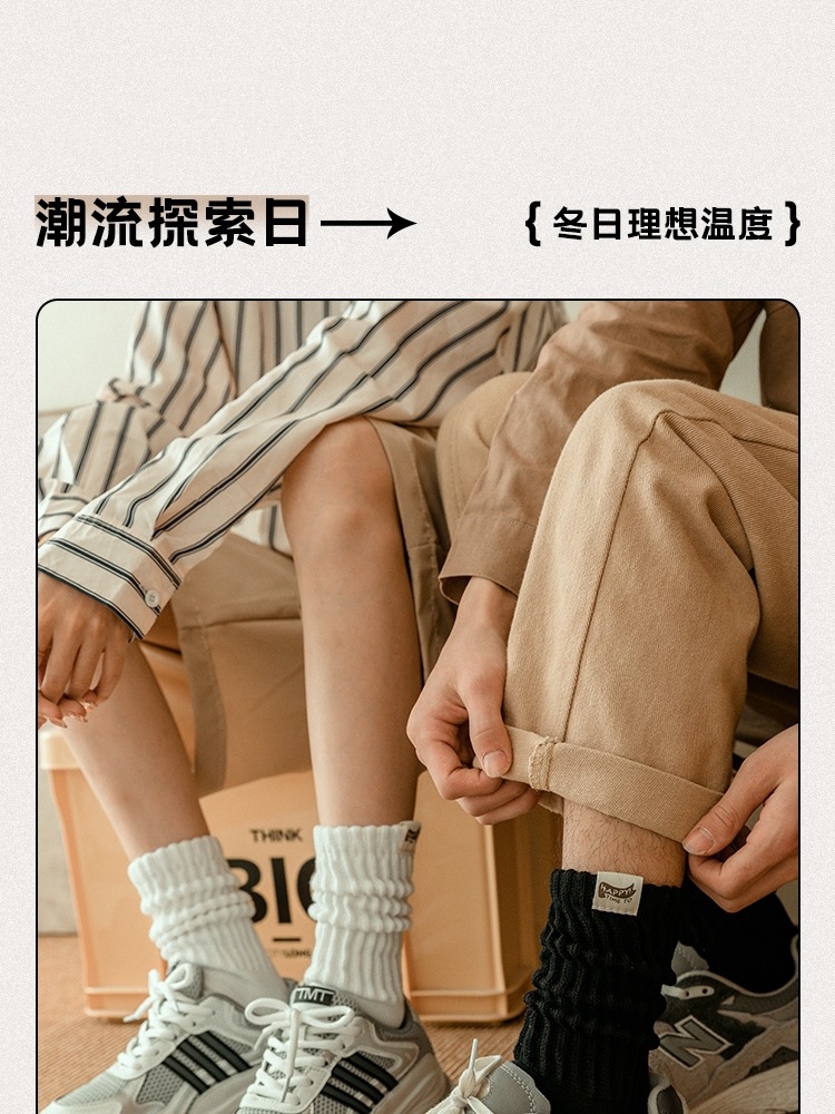 毛巾底长筒袜六叔男女同款日系复古粗线潮牌情侣袜子秋冬 堆堆袜