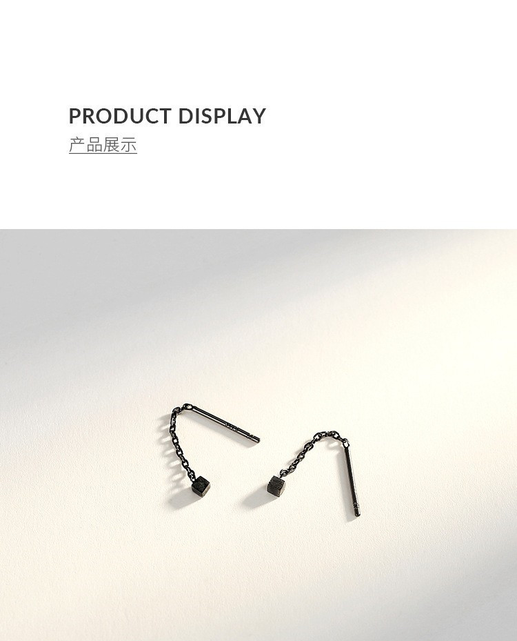 925纯银针耳钉女简约冷淡风小巧方块睡觉不摘耳线气质潮耳环